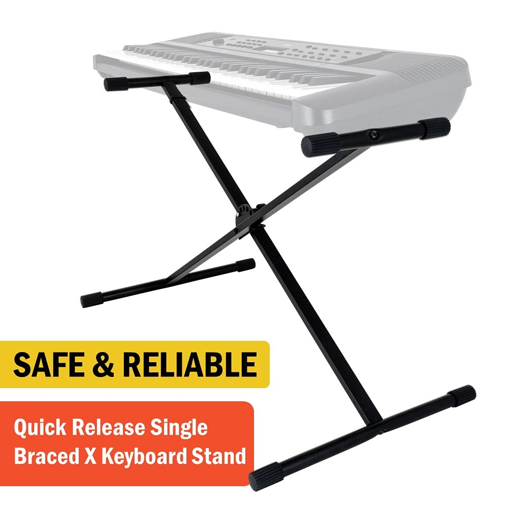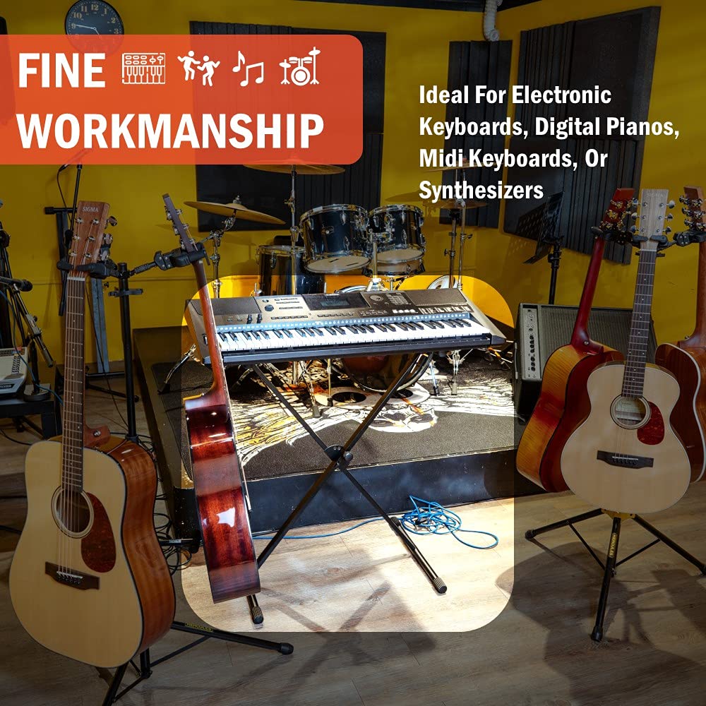 Safe & Reliable - The classic X frame design features a secure bolted construction for reliability & maximum stability. It also comes with stable cushion feet and keyboard rests. No matter you are novel, amateur, or professional, the stand is your best choice.