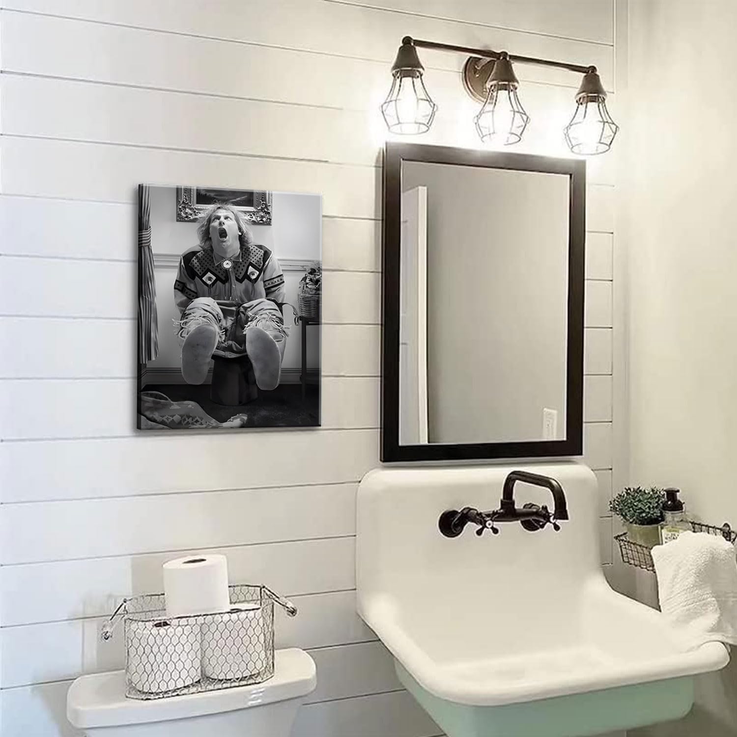 Humorous Home Decor: Bring a touch of laughter to your bathroom with our framed canvas wall art featuring the iconic scene of Harry Dunne on the toilet from the movie "Dumb and Dumber." It's the perfect conversation starter and mood-lifter for any bathroom space.