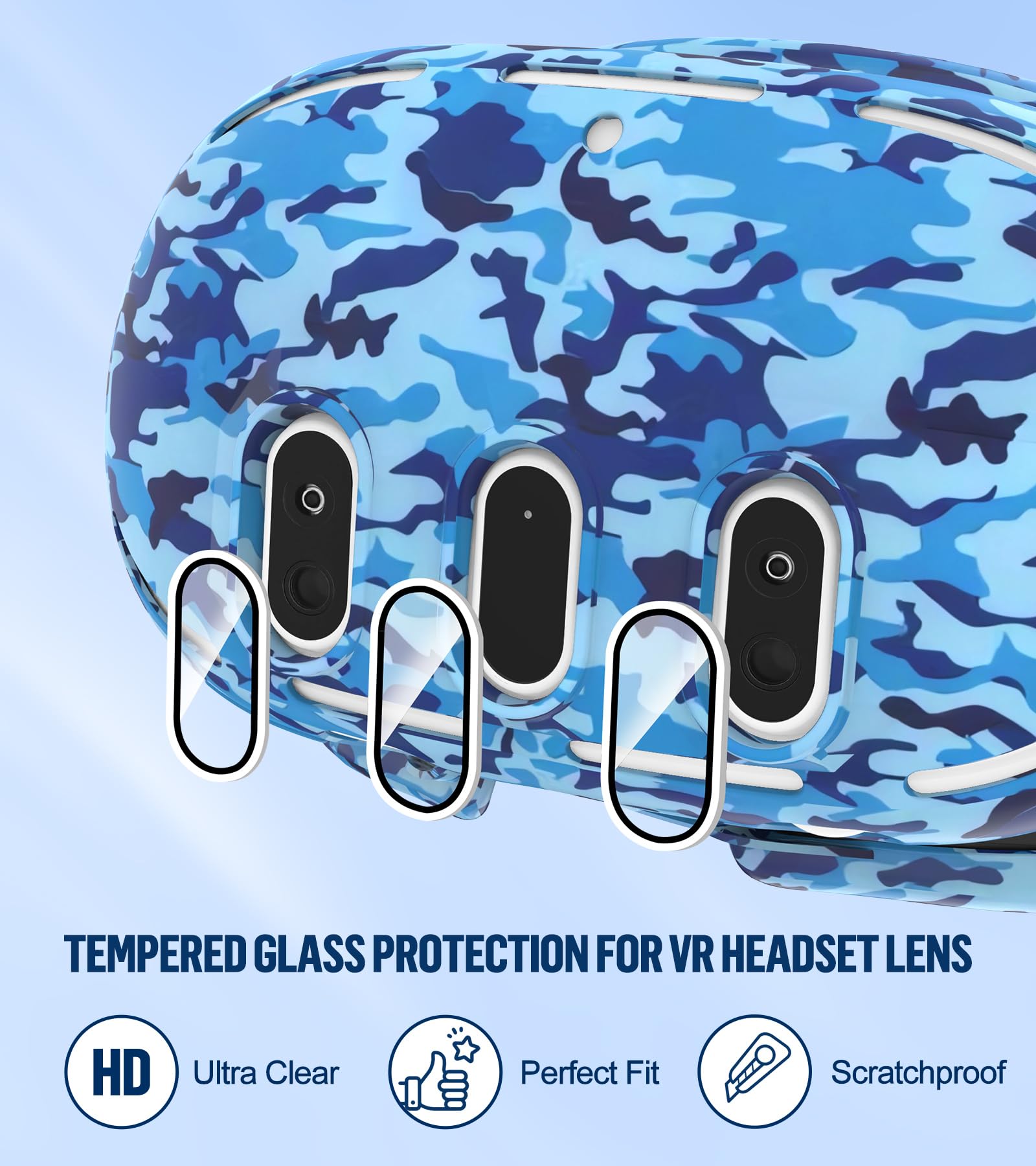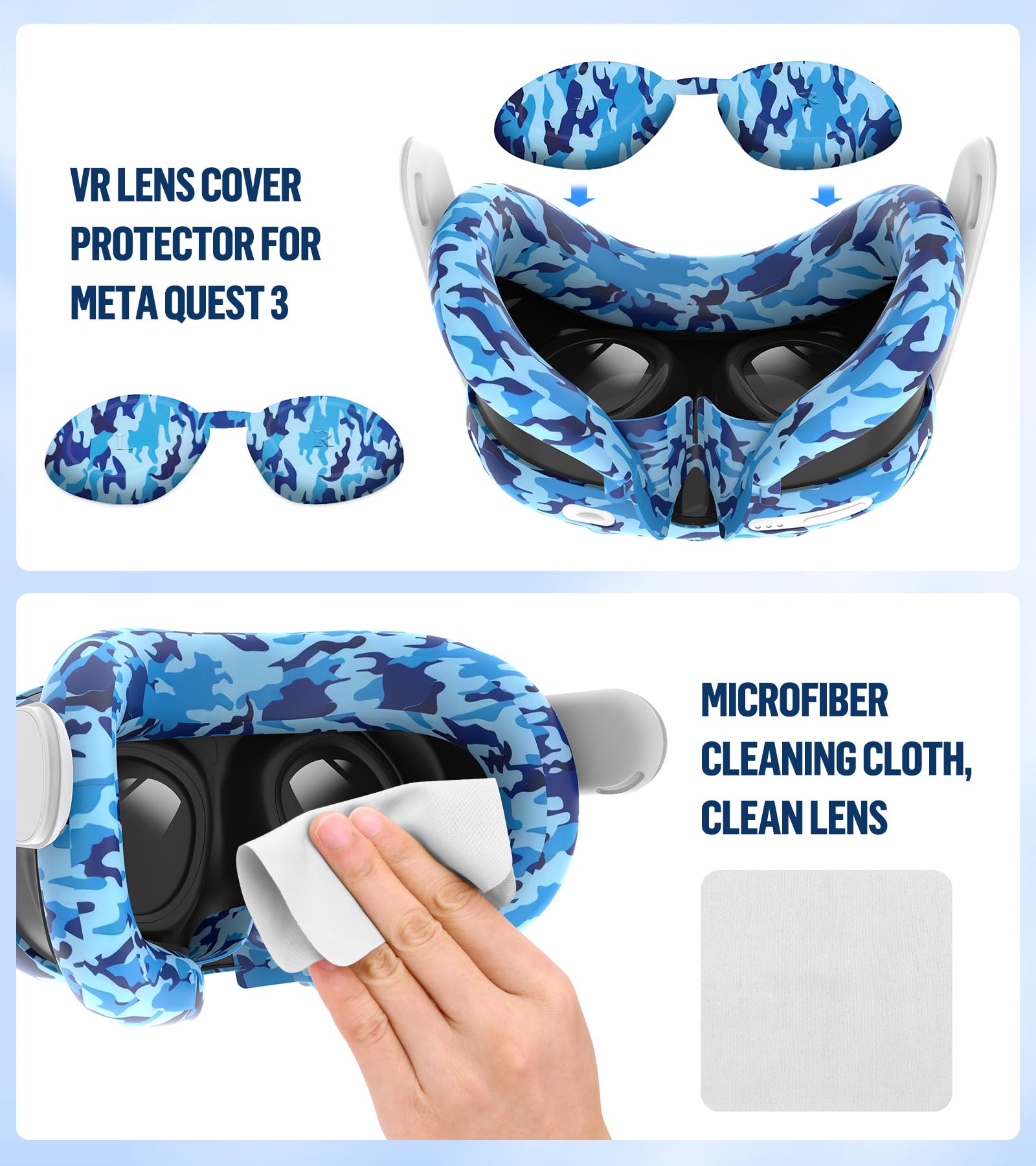 【Compatible with Meta Quest 3 Accessories】Incleuded 1x VR Silicone Face Cover, 1x VR Headset Shell Cover, 2 x Controller Grip Cover, 3 x Lens Tempered Glass Protector, 1x Lens Camera Protector, 2x Joysticks Cover, 1 x Cleaning cloth. Ensuring full protection for your Oculus Quest 3.