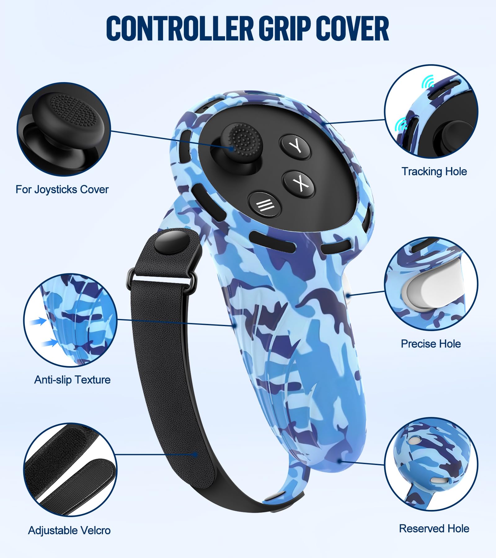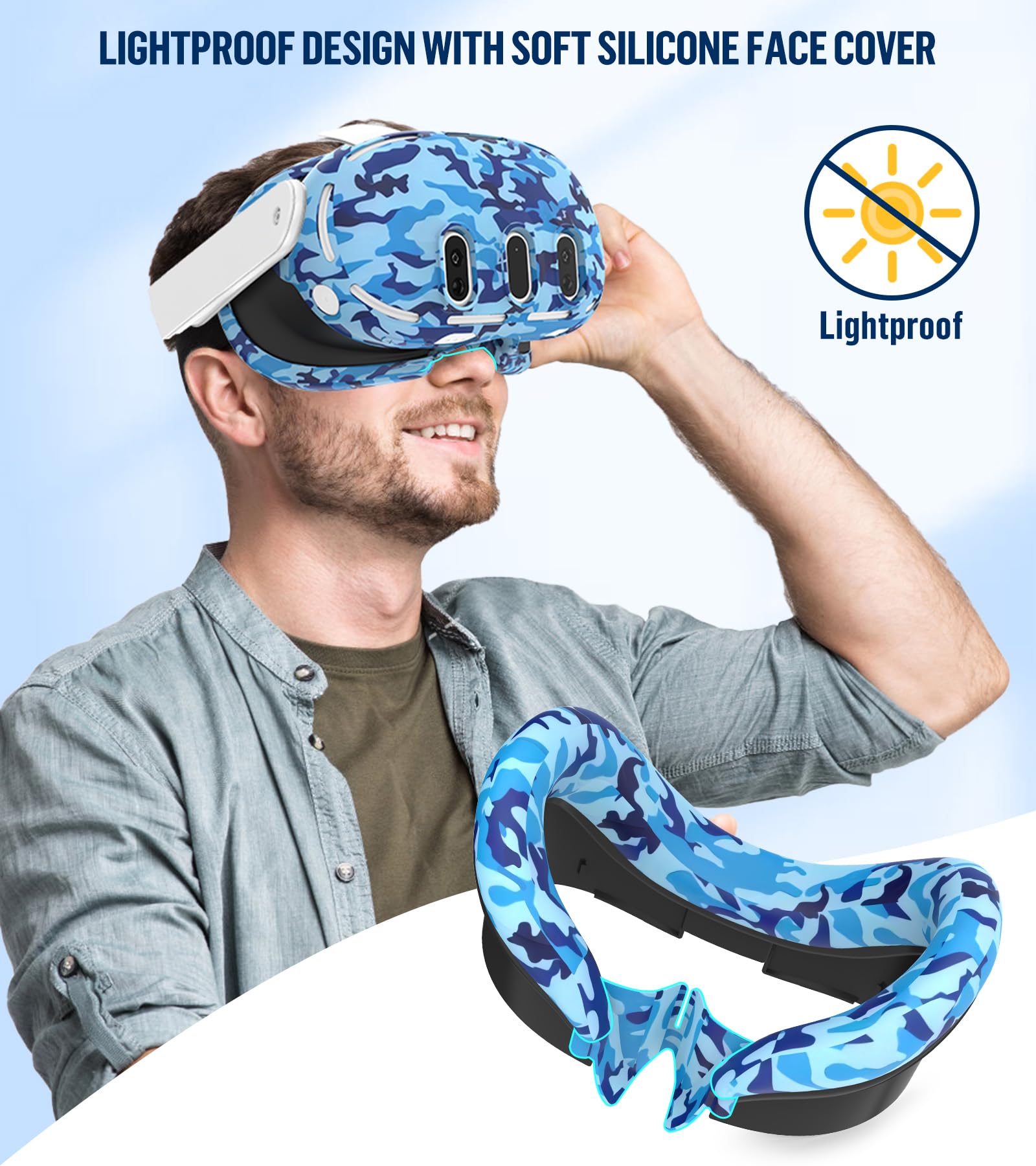 【Enjoyable Gaming Experience】The silicone protective skin cover set safeguarding Oculus Quest 3 from scratches, drops, and damage. They are Soft , Comfortable , Sweatproof, Reduce Shocks, lightproof and leakproof, specially designed and enhance gaming experience fit perfect compatible with Oculus 3.