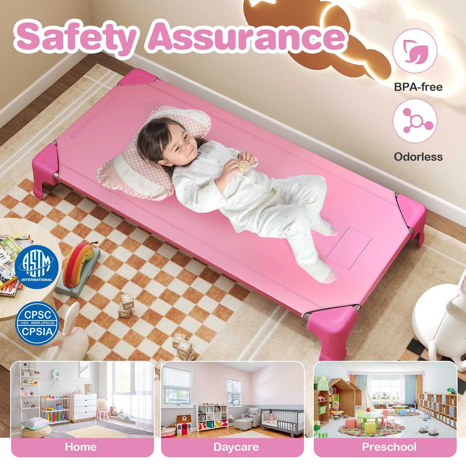 [ Easy Assembly and Cleaning ]: The stackable kiddie cots only takes a few minutes to assemble, saving your time and energy. They are perfect for busy daycare centers and preschools. The fabric cloth is secured with hook and loop fasteners and can be easily removed for easy cleaning, ensuring a hygienic environment for children.