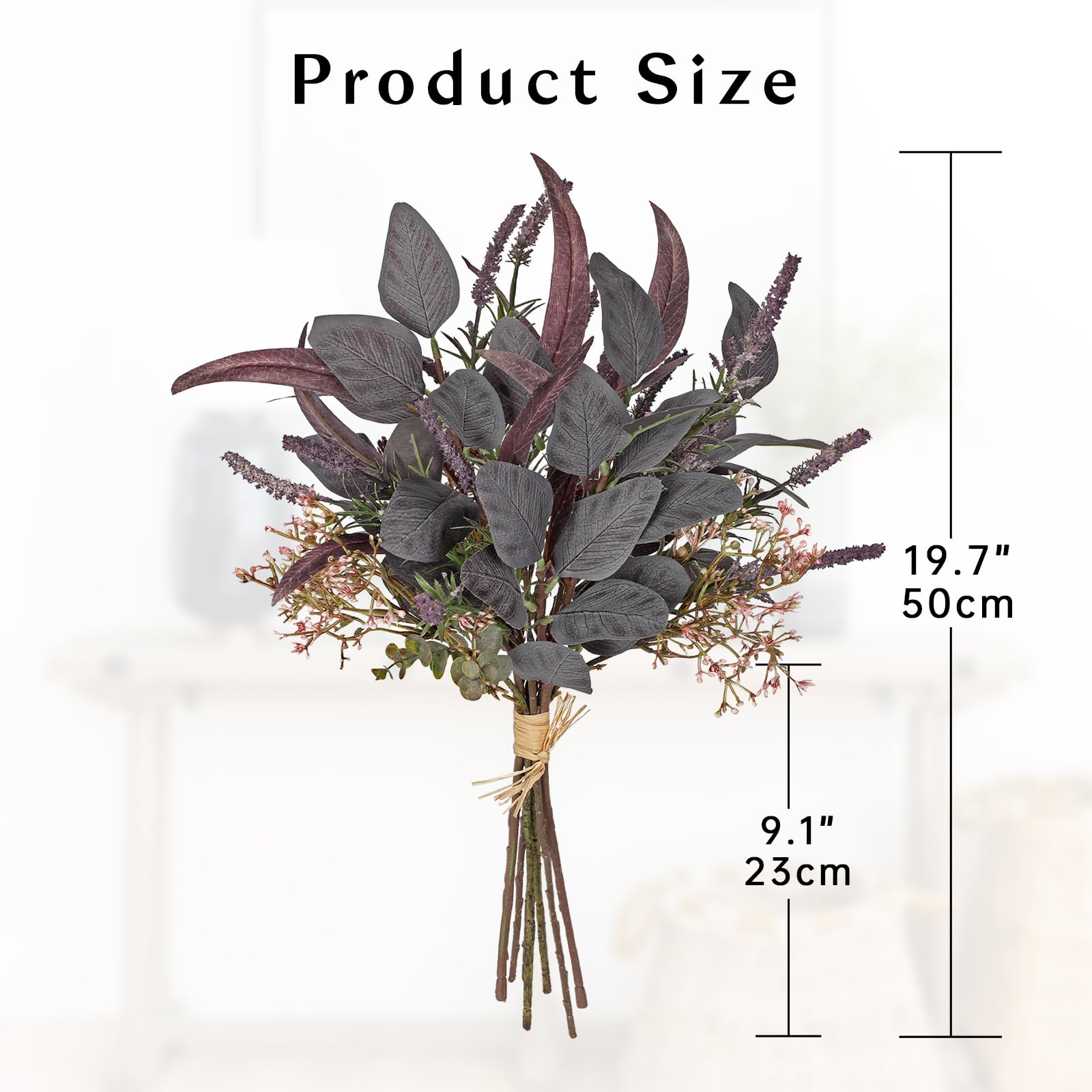 SEASONAL SIZE FOR FLEXIBLE FALL DECORATING: Standing at 18.9" (48 cm) tall and 9.1" (23 cm) wide, this lush eucalyptus bunch adds volume and color to your fall floral centerpieces, mantel displays, or kitchen counter vases. A great choice for autumn weddings and DIY crafts