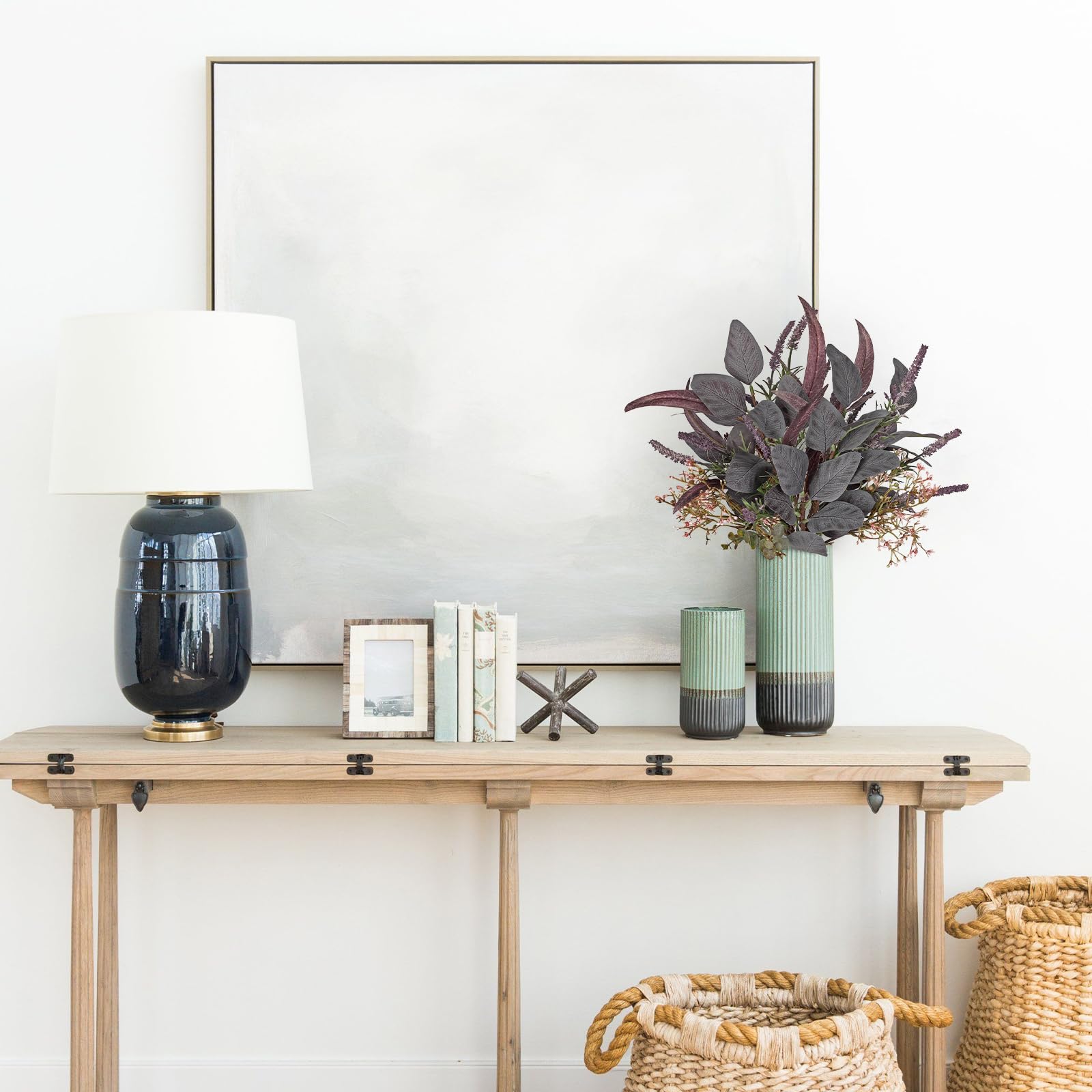 MAINTENANCE-FREE FALL GREENERY: Enjoy the beauty of autumn all season long without watering, sunlight, or upkeep. This hassle-free artificial eucalyptus arrangement stays vibrant and fresh year after year—perfect for busy households or festive displays