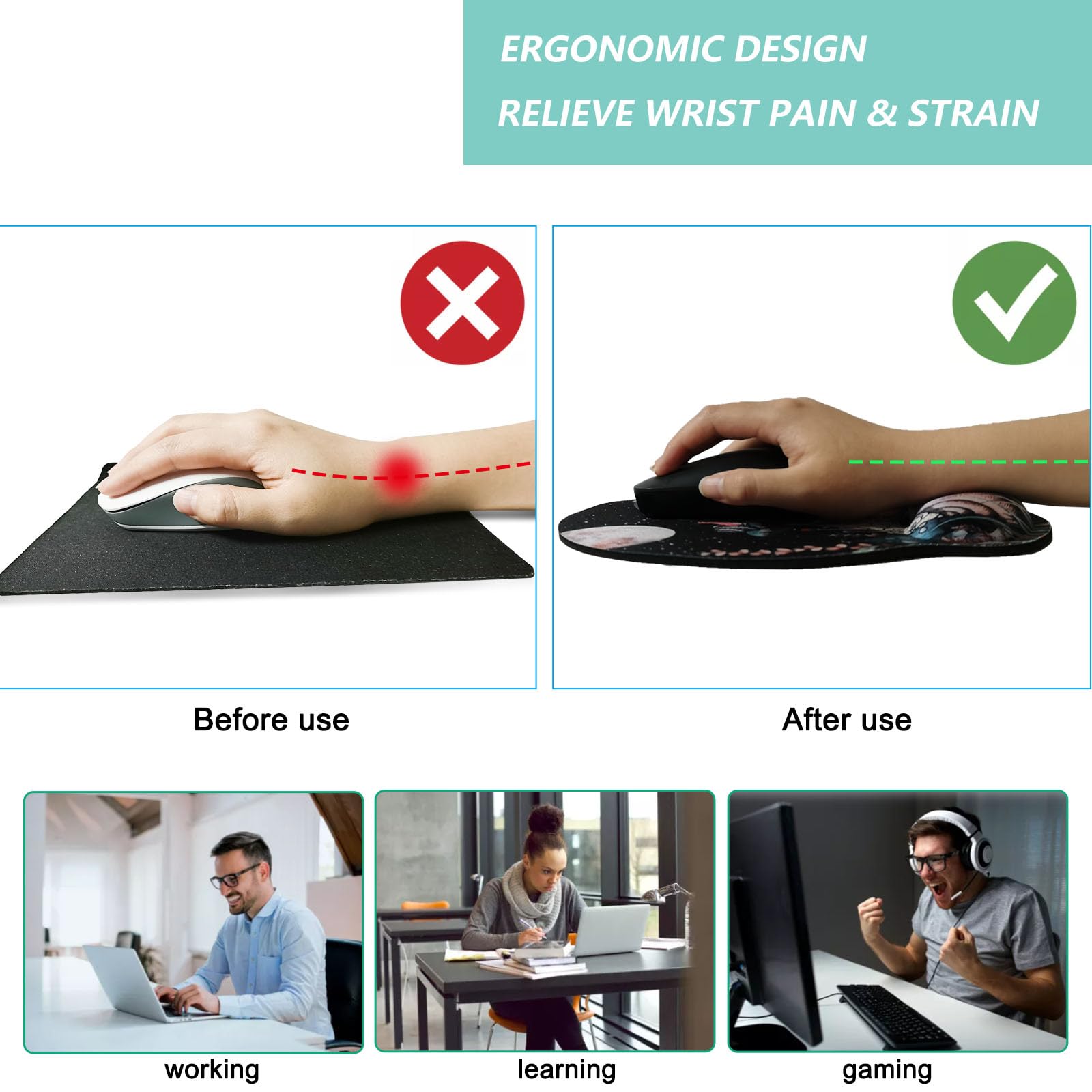 PROTECTION - Protect your wrist, shoulder by using our mousepad with wrist support. It can reduce fatigue, relieve pressure on your hand, wrist, elbow and shoulder, avoid carpel tunnel syndrome, and avoid excessive friction between wrist and desk.