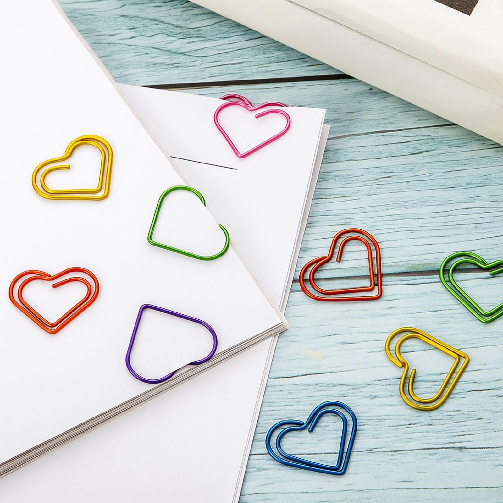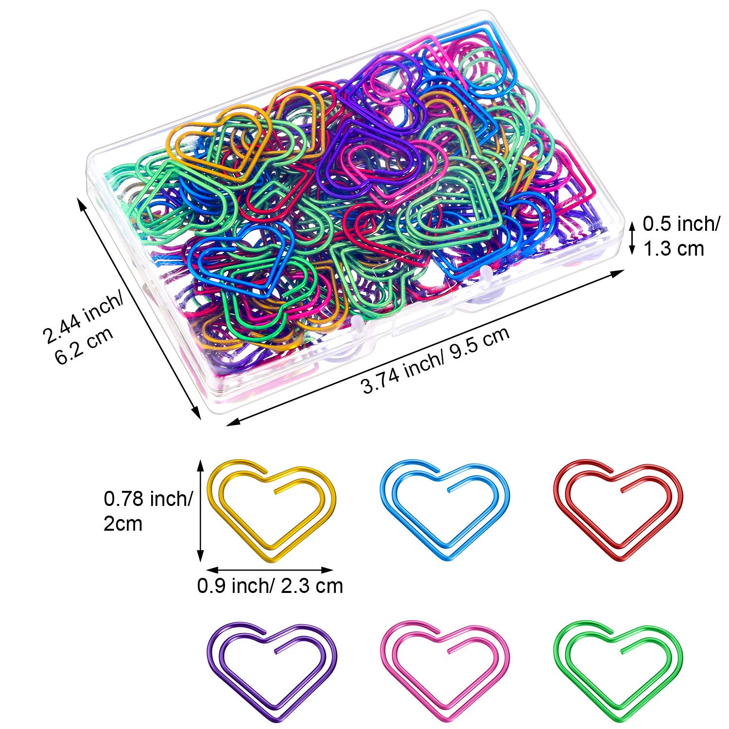 Cute Metal Heart Paper Clips Set: the colorful paper clips size is about 23 x 20 mm/ 0.9 x 0.79 inch, suitable for marking and arranging different files; Heart-shaped paperclips in 6 colors: includes red, pink, gold, purple, green and blue