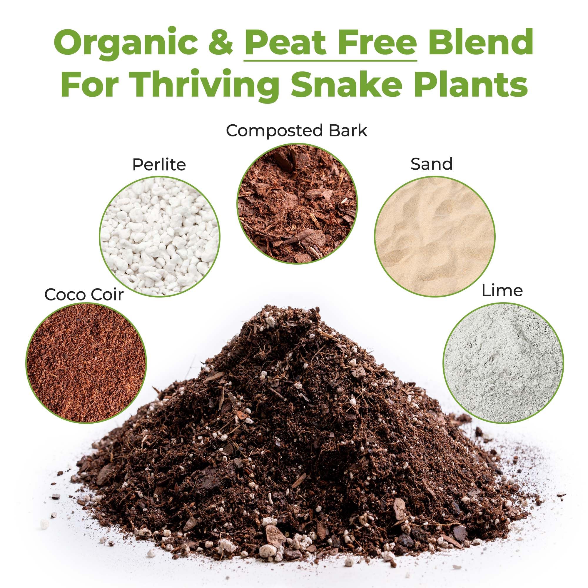 PERFECT FOR ALL SNAKE PLANT TYPES- Specially blended substrate for all snake plants such as Sansevieria trifasciata, Laurentii, Black Coral, and Cylindrica