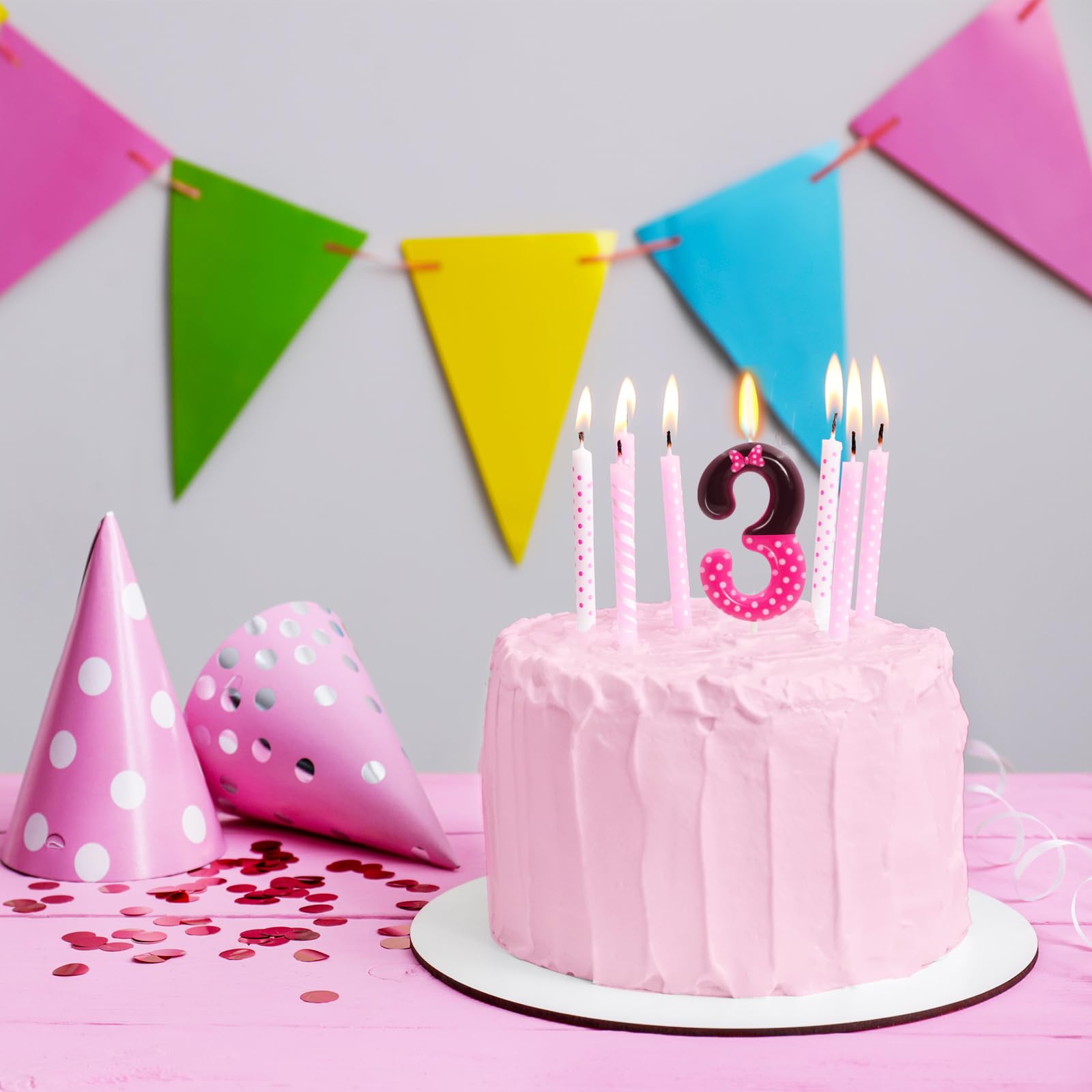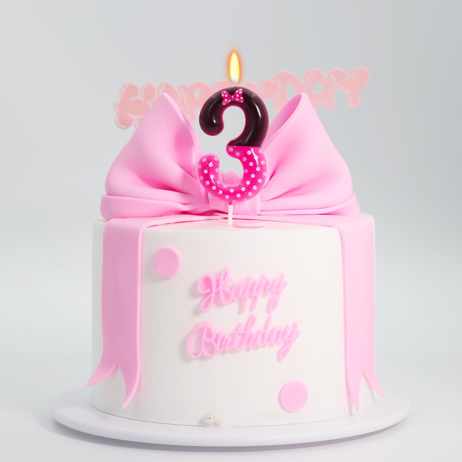 BEAUTIFUL DESIGN: With a pink and black colour clash design, this birthday candle looks playful and cute with a cute bow and white polka dots printed on the candle
