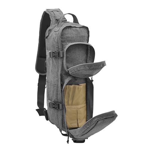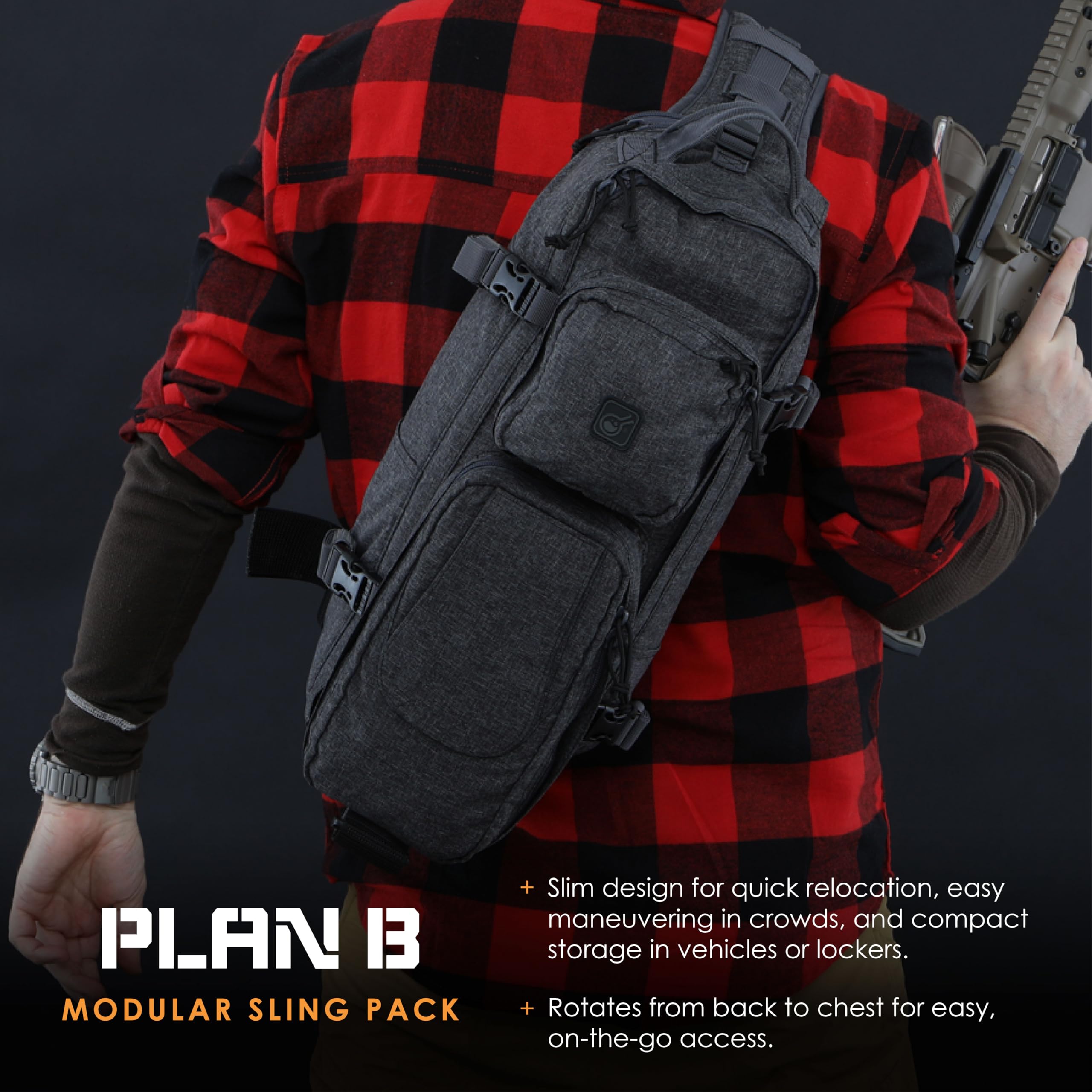 Grayman(TM) version of our best-selling Plan-B(TM) sling-pack, this model adds a very light and smooth fabric that mimics the look of felt or suit cloth; Low-key, urban version with external 'tactical' features removed.