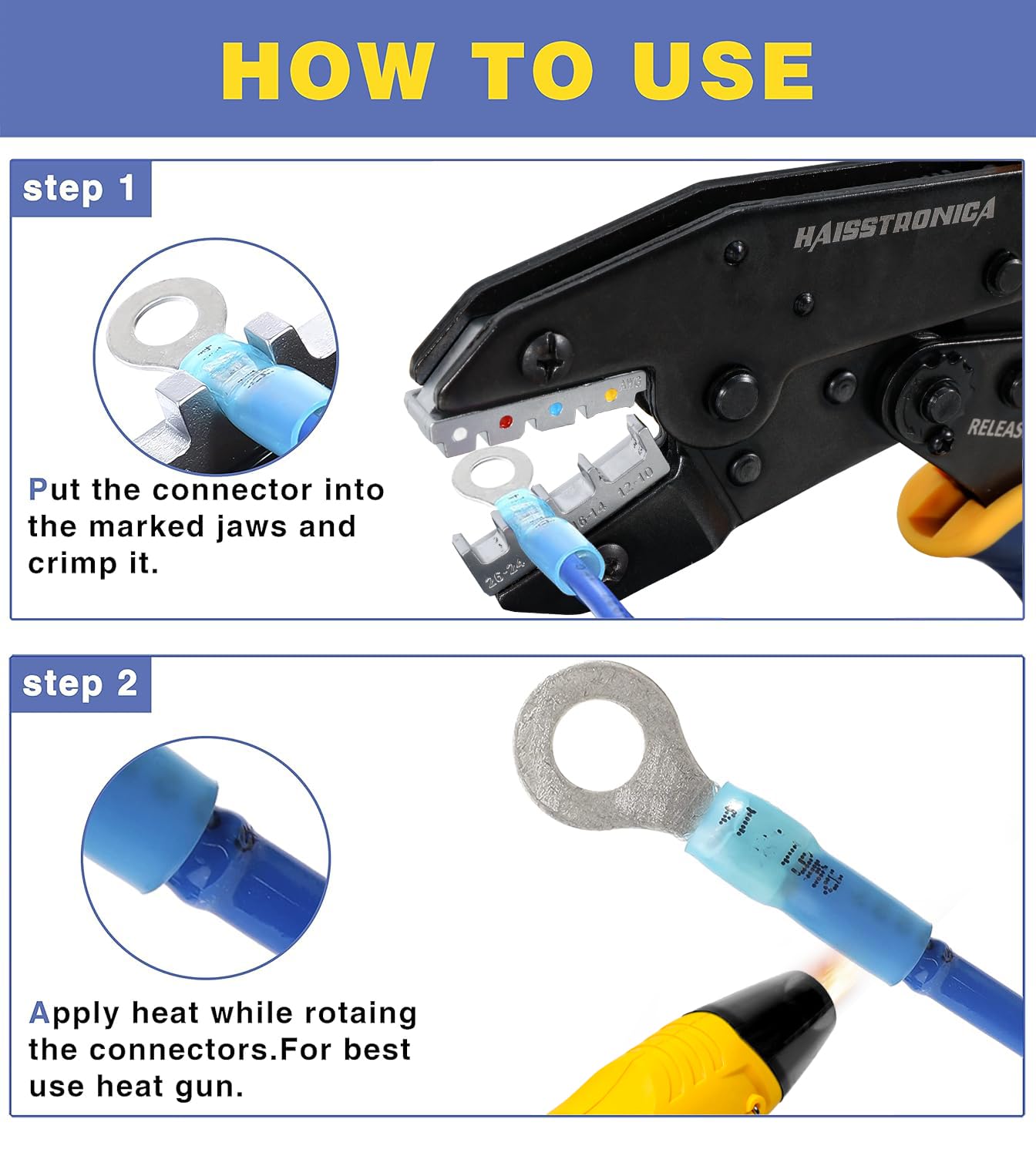 Live Without Limits:Don't be held back by a humble looking wire connectors.Haisstronica heat shrink connectors are made of tinned copper.The tinning process is designed to effectively prevent copper from being oxidized and reduce resistance.While higher purity copper enhances electrical conductivity