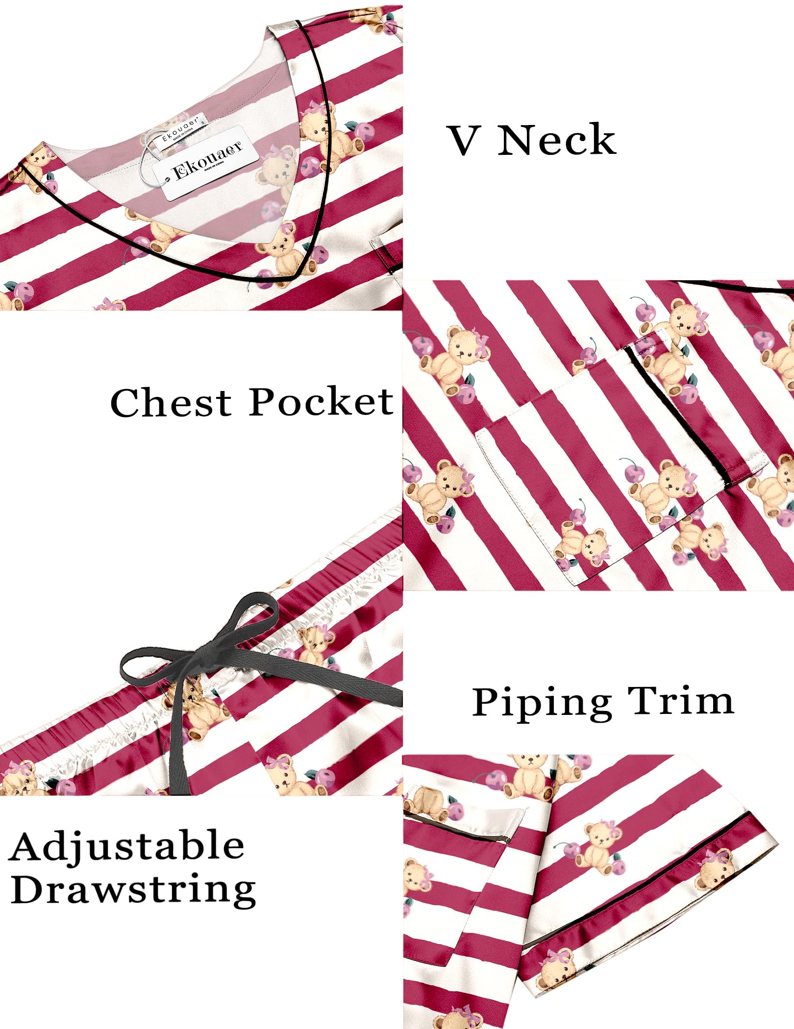 Kindly Remind: Ekoauer silk satin pajamas set are luxuriously stylish & soft to the touch! Washable with laundry bag or similar color clothing. Do not bleach,dry low.Gently press with a warm iron to modify packaging wrinkles before first time wear