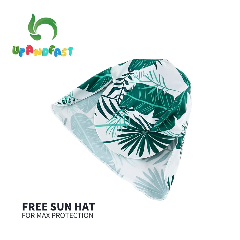 CUTE SUN HAT: Toddler rash guard that comes with a lovely hat, it covers baby's delicate face and neck. which can give baby more protection when playing at the sea, beach or under the sun