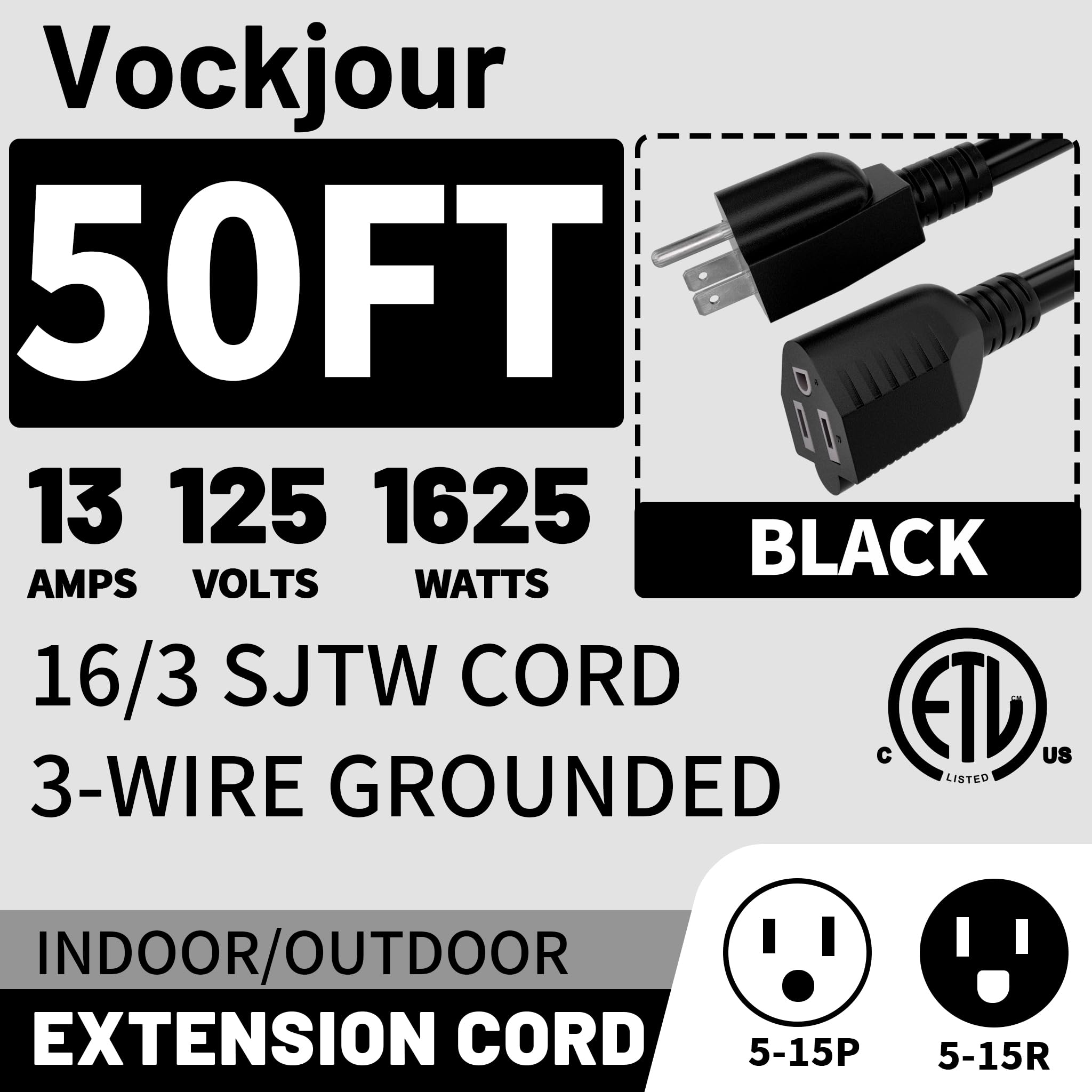 Multiple applications: 50ft indoor outdoor extension cord is commonly used for small appliances, offices, DIY power tools, TVs, stereos, lamps, and a variety of other devices, and the black extension cord 50 ft is also great for camping, picnics, and other outdoor activities that require power