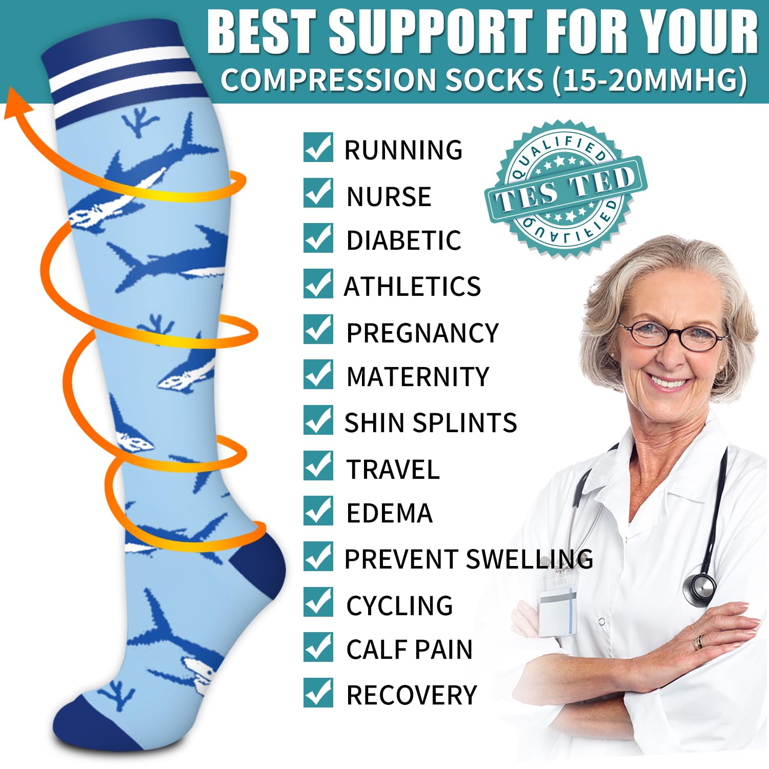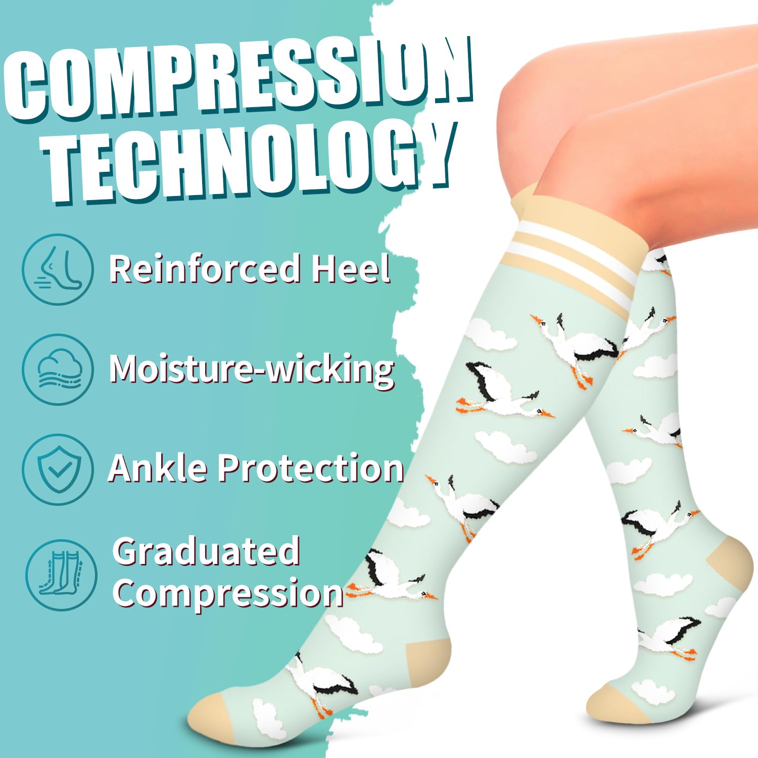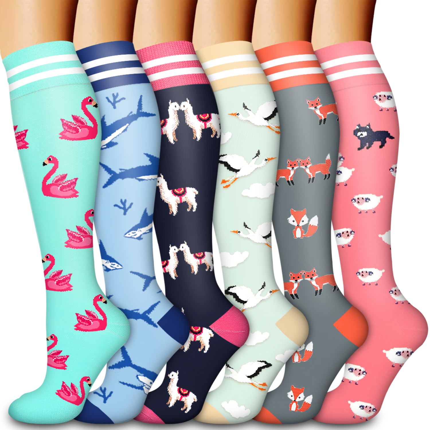 AMAZING EFFICACY-With a unique compression level that isn't too loose or too tight,it means you can wear our compression socks for women all day long comfortably.As they gently constrict the tissues and oxygenate the blood,they move waste fluids out,promoting ample circulation.Remove stress and stimulate every cell,reduce fatigue,soreness,cramping and prevent Varicose veins at the same time Ensure the healthy functioning of your circulatory system.Keep your legs feel fresher and more energized.