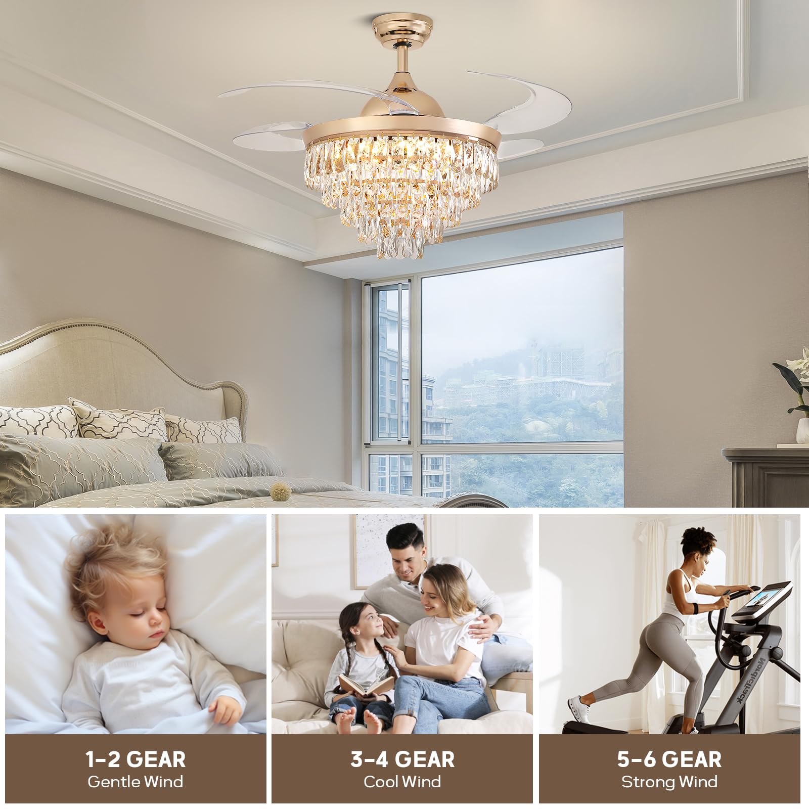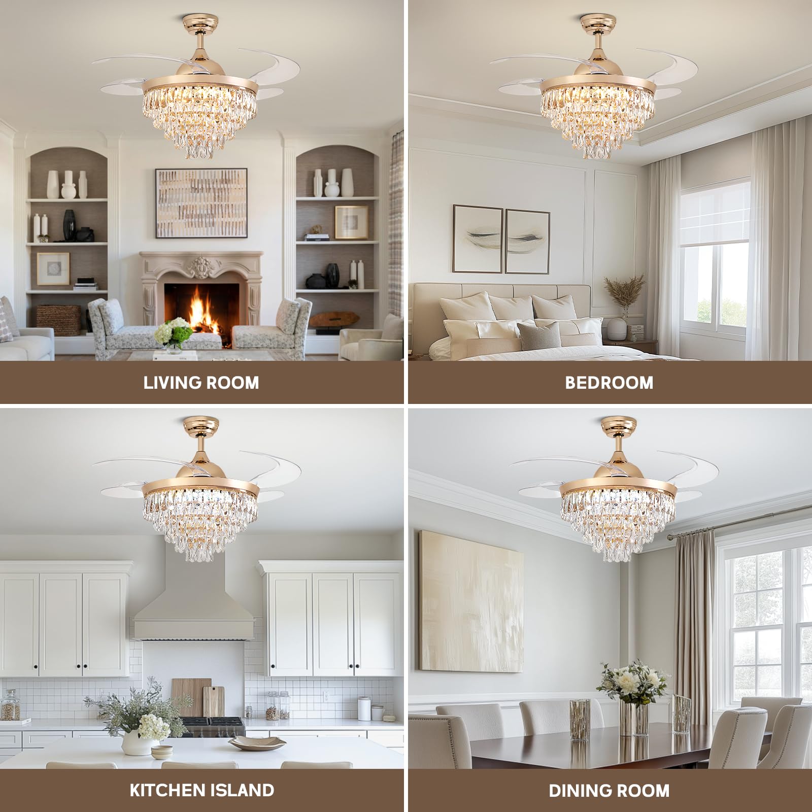 【Luxury Gold Crystal Ceiling Fan Light】CROSSIO gorgeous crystal fandelier is made of K9 clear crystal, clear acrylic, which looks beautiful and elegant. Suitable for many scenes, such as kitchen, Dining Room, Living Room, library, office, and cafe, etc.