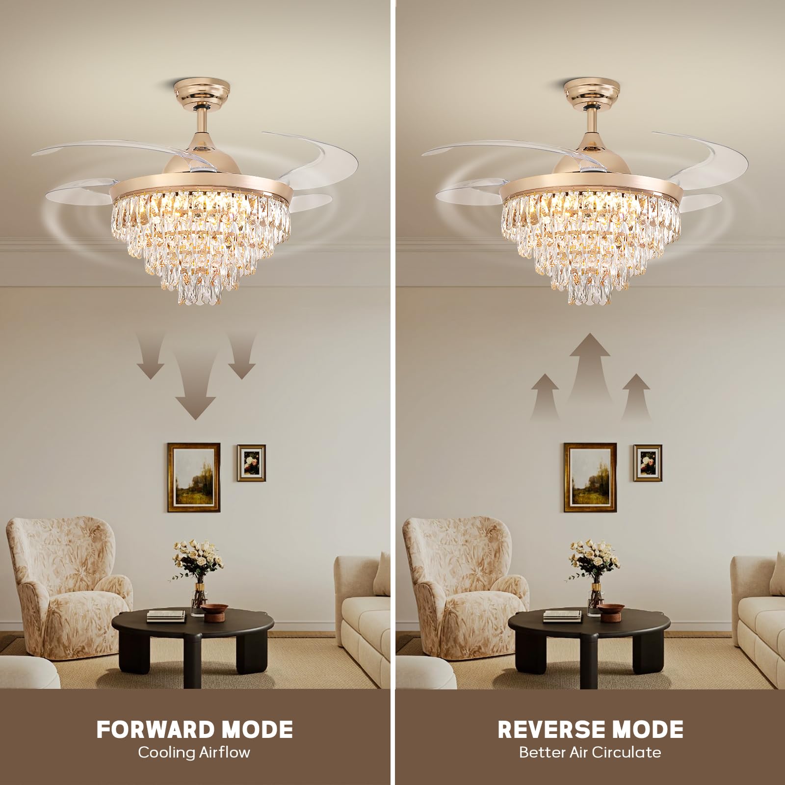 【APP & Remote Control】The crystal ceiling fan lights with remote and smart APP control, All operations of ceiling fan and lights can be controlled with remote control and APP, Easily realize the convenience brought by smart life.