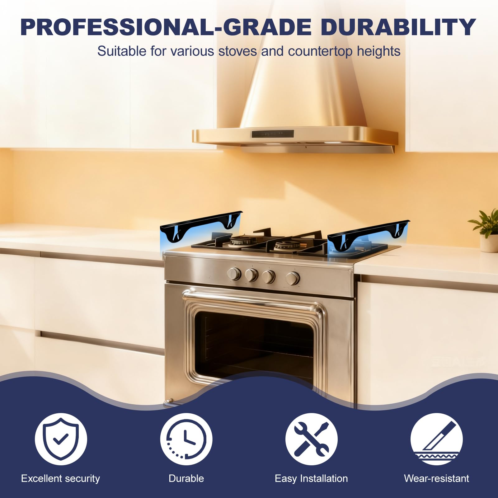 【Easy Installation & Effortless Cleaning】No tools required—simply slide the stove gap cover into place. The anti-slip spring base keeps it firmly secured even during daily cooking and cleaning. Wipe with a damp cloth or mild cleaner to restore its shine in seconds.