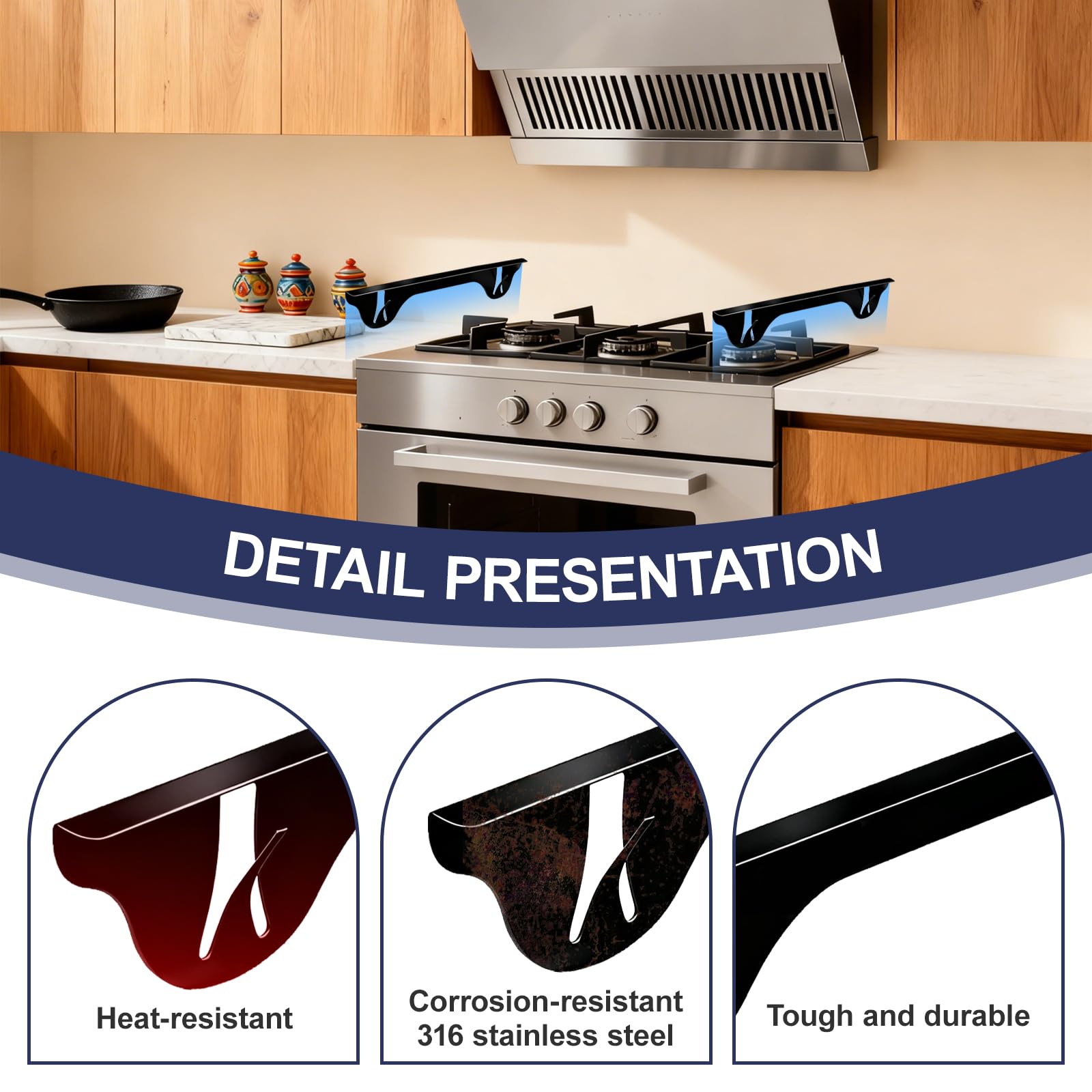【Premium 316 Stainless Steel】Crafted from high-grade 316 stainless steel, this stove gap guard offers superior durability and corrosion resistance compared to 304 steel or aluminum alternatives.