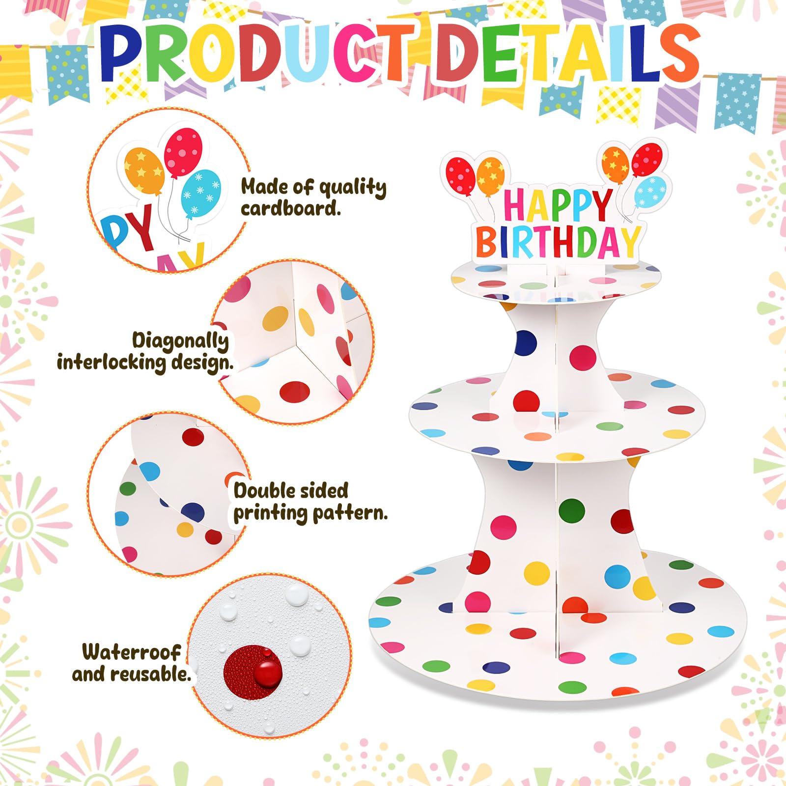 Polka Dots Design: Our birthday cupcake holder are designed with rainbow polka dot and printed with a colorful "Happy Birthday" title; Pair it with coordinating birthday party supplies for a cohesive look that will wow your guests