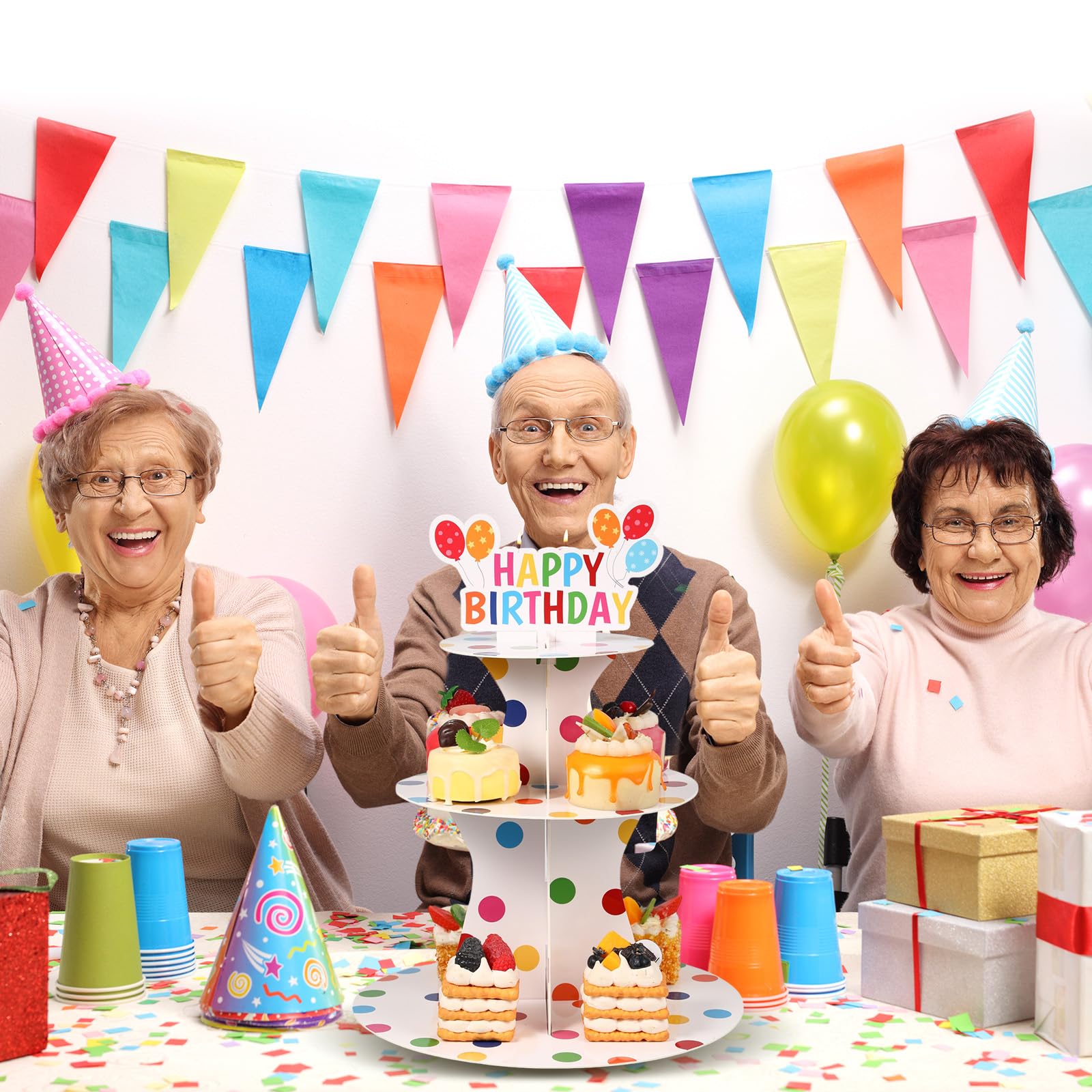 Birthday Party Decorations: Whether you're celebrating a first birthday or a milestone year, this happy birthday cupcake stand is sure to impress your guests and make your event memorable. It's not just a practical accessory for serving desserts; It's also a decorative piece that adds a touch of atmosphere to your cake decorations