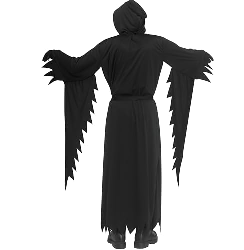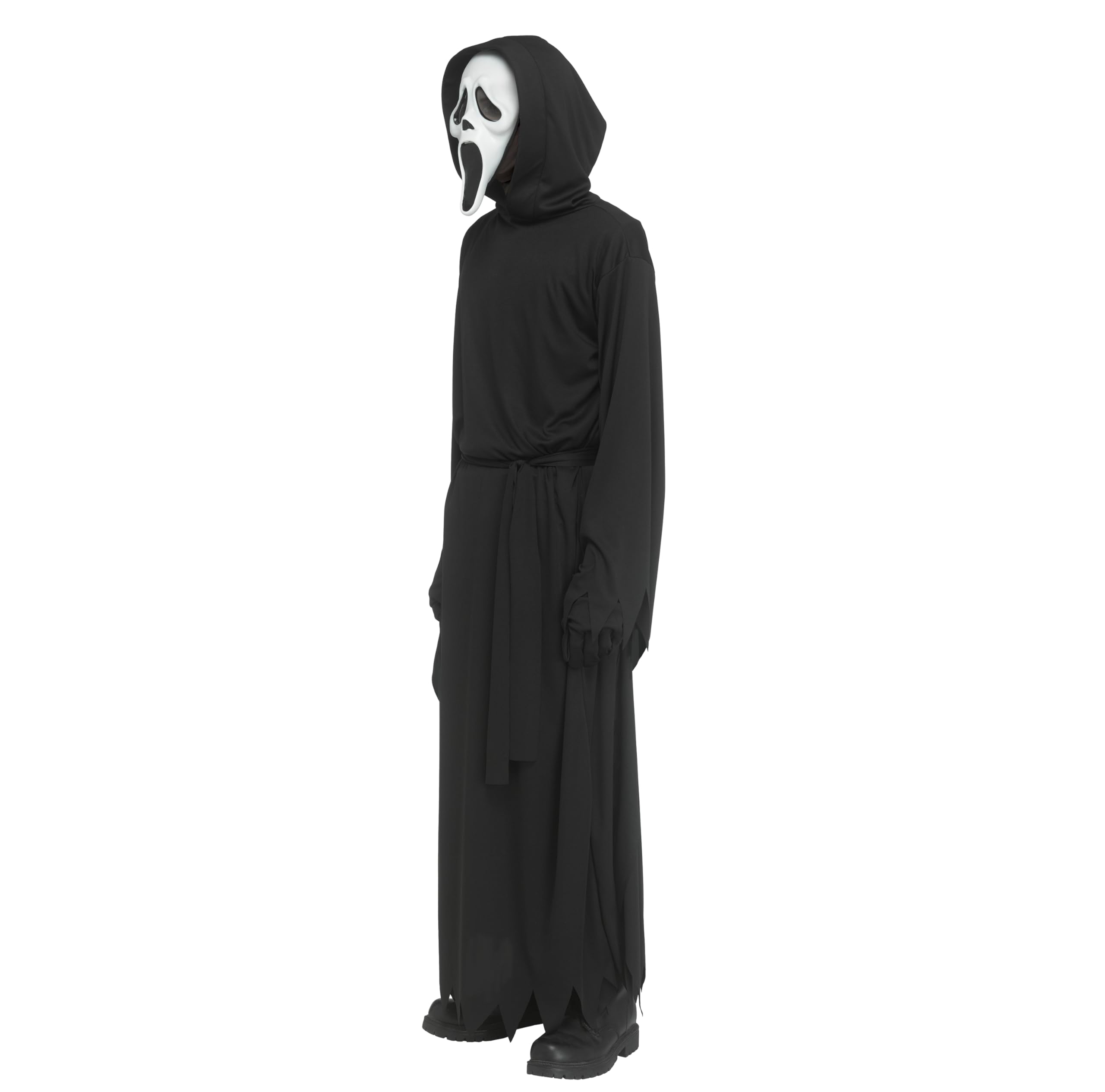 Description Product Description Channel your inner phantom with the Fun World Teen Ghost Face Costume! This chilling ensemble features a classic, haunting design that captures the essence of mystery and spookiness. With its flowing black robe and iconic mask, this costume is perfect for Halloween festivities, haunted gatherings, or any occasion where you want to make a memorable entrance. Complete the look with some eerie accessories (not included), and you’ll be ready to haunt the night with style. Embrace the thrill of the unknown and prepare for a frightfully fun time! From the Manufacturer An excellent costume for boys featuring the costume from the movie "Scream". This set includes a full hooded robe, belt, and "Scream Mask"