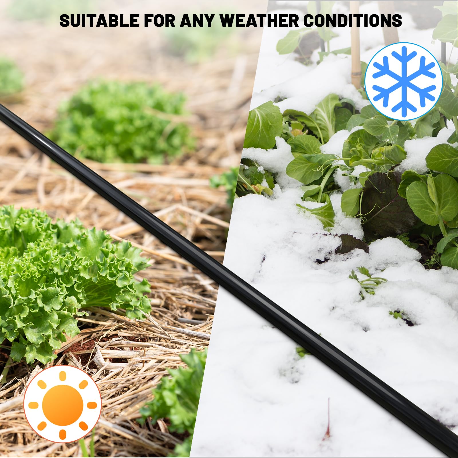 High Quality Material: The irrigation pipe is made of flexible PE material, which is durable, UV resistant, highly flexible, and will not break when bent. It is sturdy, durable, and easy to cut