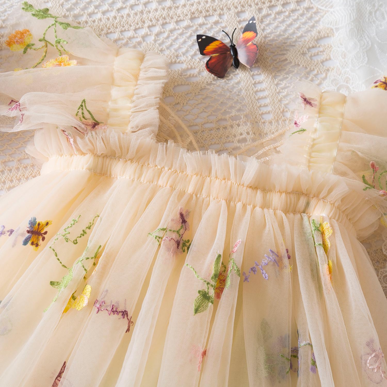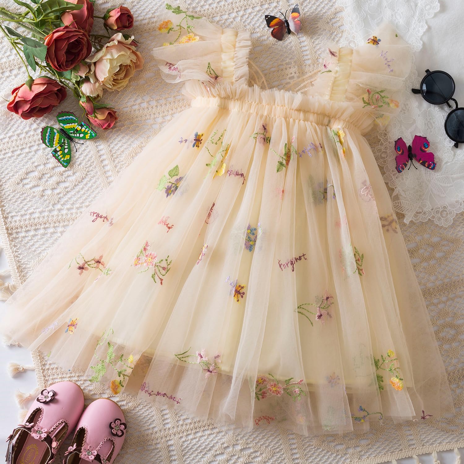 Charming Floral Embroidery: This adorable summer dress features delicate floral embroidery on soft chiffon, creating a sweet and elegant look for your little girl.