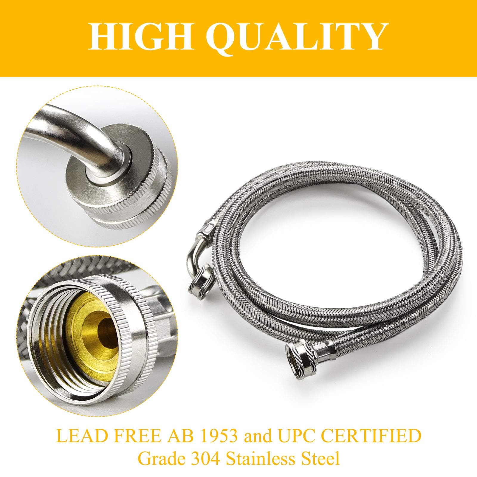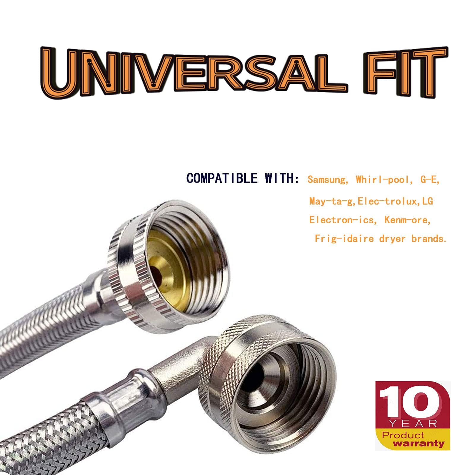 CERTIFIED QUALITY: Our dryer steam hose kit is certified lead-free and meets AB 1953 and UPC standards. The high-pressure forged brass nuts ensure tight, gap-free, leak-proof connections. The PVC hose core with precision spool is resistant to wear and aging, and the Y connector provides a flexible, universal fit.