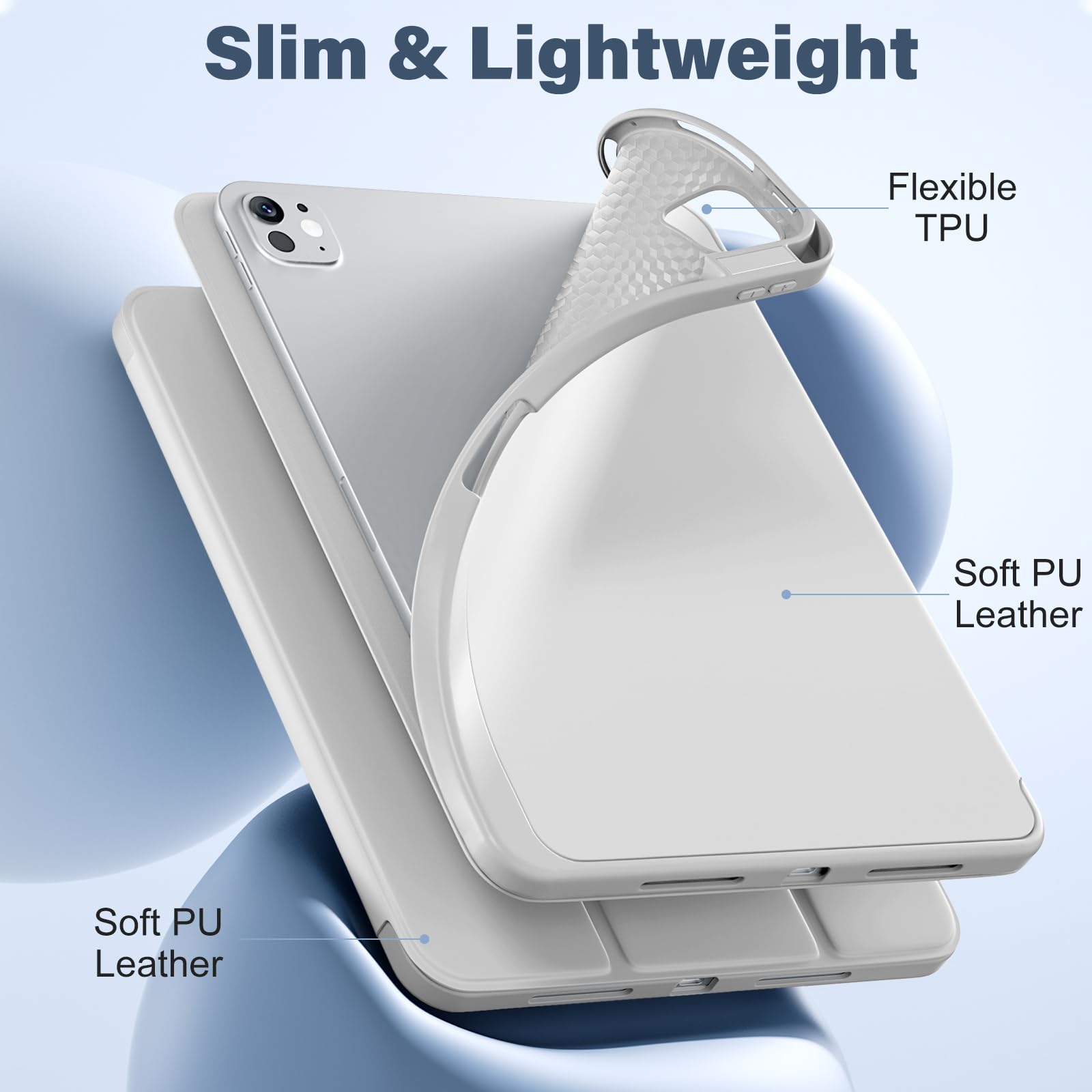 【Full Protection】The outer layer of the iPad Pro 11 inch m5 case is crafted from PU leather, offering a soft and comfortable feel. The inner shell frame utilizes shock-absorbing TPU material, providing exceptional drop and impact protection.