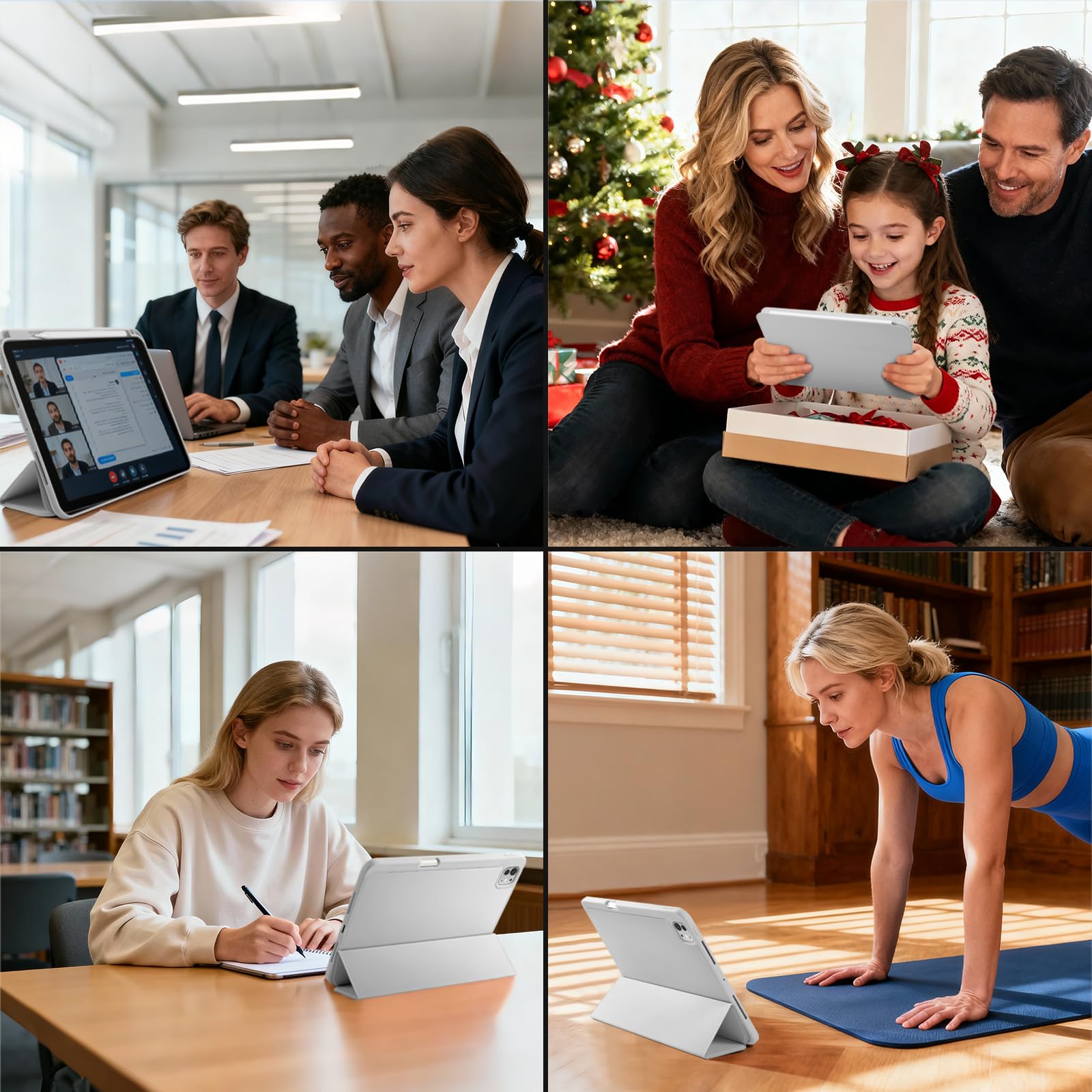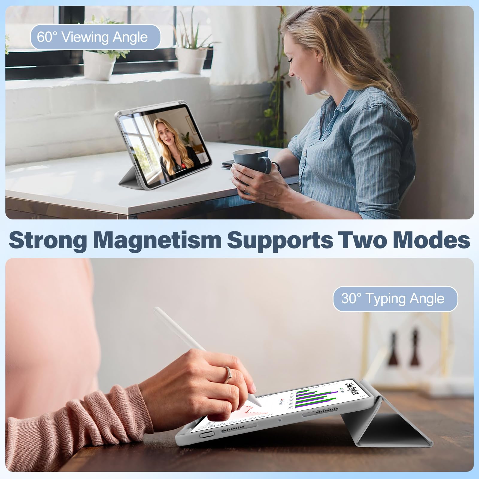 【Typing Angle/Viewing Angle】This apple iPad Pro 11 inch case features a tri-fold design, and when folded, the triangular stand provides exceptional stability. The case offers two daily-use angles: the 30° angle is ideal for drawing, typing, or chatting, while the 60° angle perfectly suits scenarios like watching videos, video calls, and handling emails.