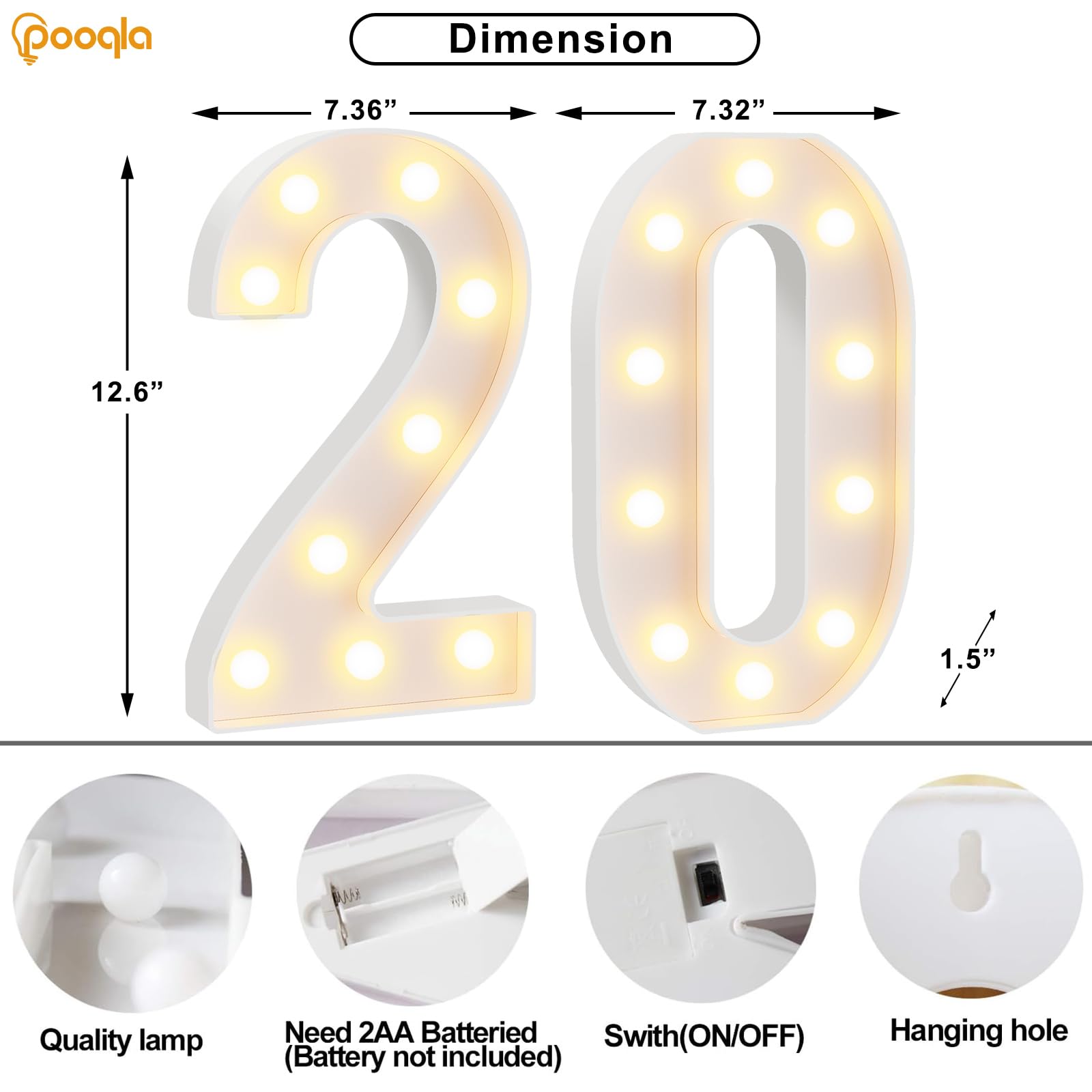 Comes with 2 Individual Numbers: Number 2 and 0, which can be combined to number 20 (ideal for 20th birthdays, 20th anniversaries, or themed events) . You can also use them separately as single numbers for other scenarios