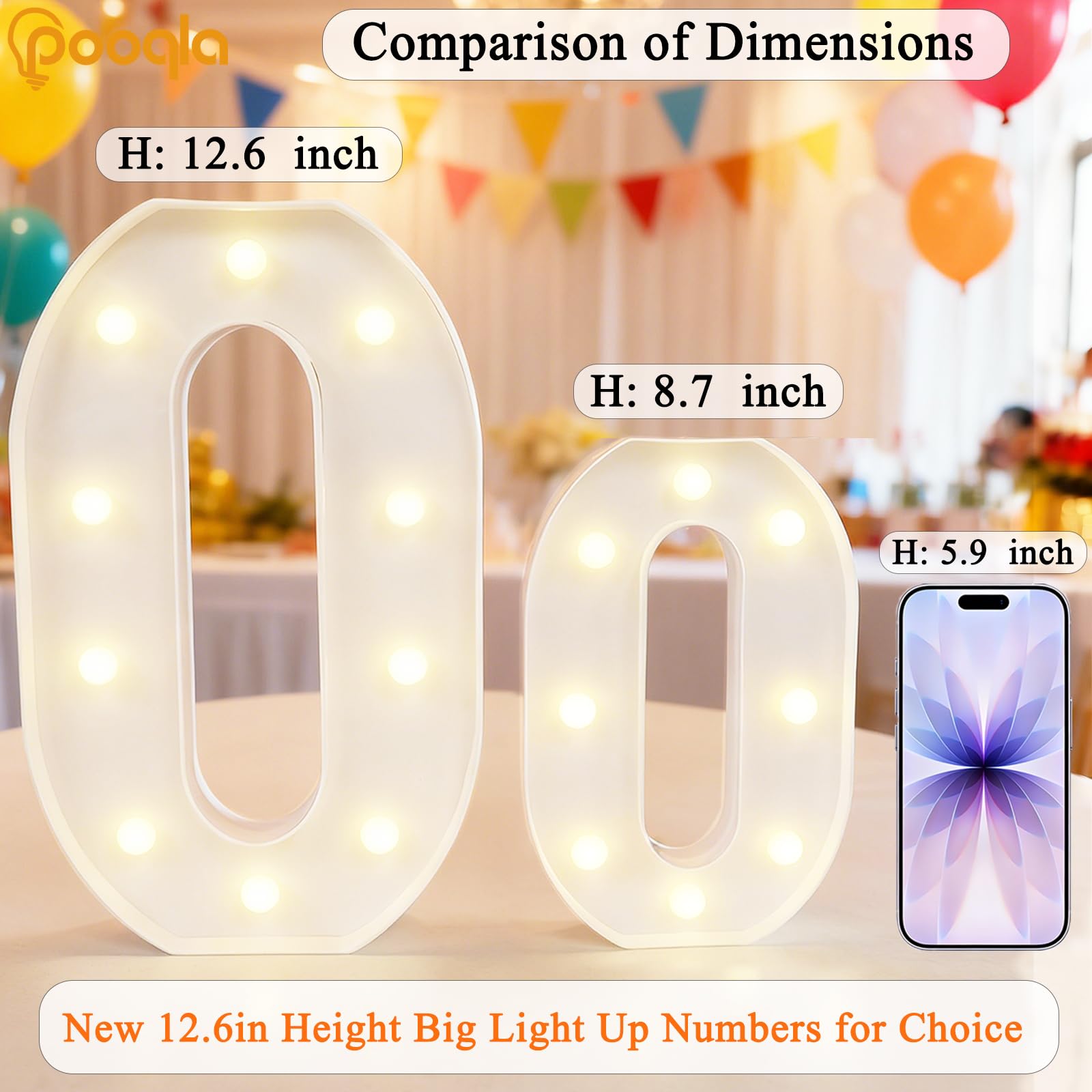 Newly Upgraded Large Lighted Numbers: Upgraded from the old 8.7 inch height to 12.6 inches big numbers. Whether placed on table, floor, or hold in hand, it quickly becomes the visual focus of the scene, enhance the atmosphere of your important moment
