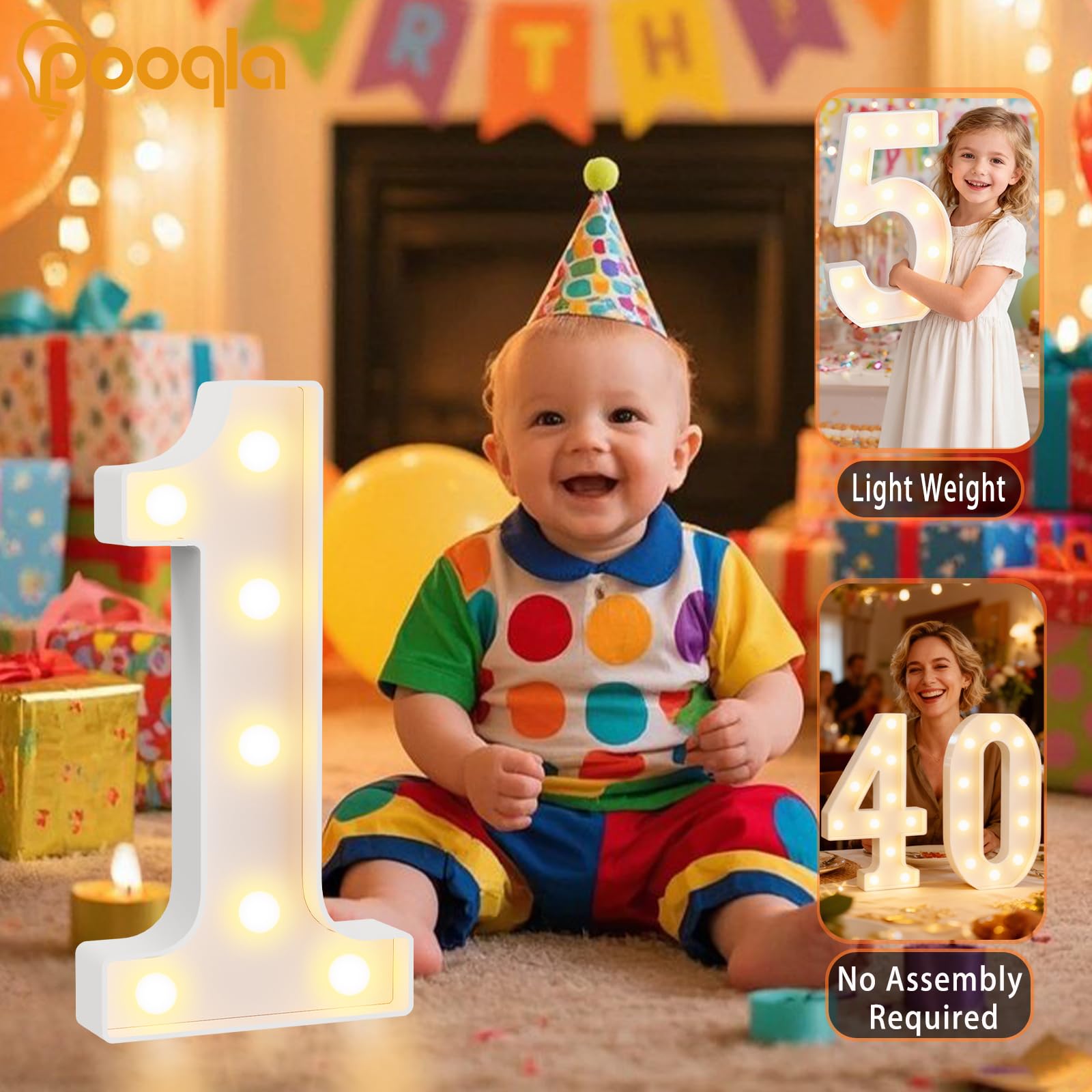 Table & Wall Birthday Party Decorations: With flat bottom, the marquee numbers can be placed on table for decoration. The light up number also has slots on back to decorate wall. Ideal for your birthday party as table centerpieces or photo props