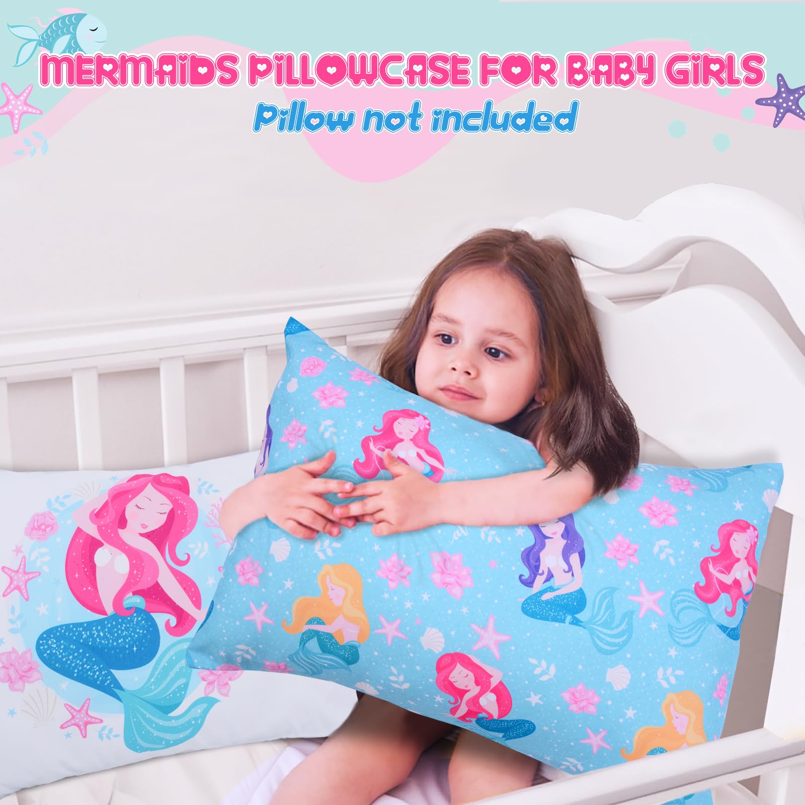 【WARM GIFT IDEA】This blue and white baby pillow cases with charming mermaids theme design, adding cuteness and vitality to the baby's toddler bed set,welcomed by most newborns and pregnant mothers.Whether it's for a new mom or mom-to-be, for a baby shower, birthday, or party, it will be a warm and special gift.