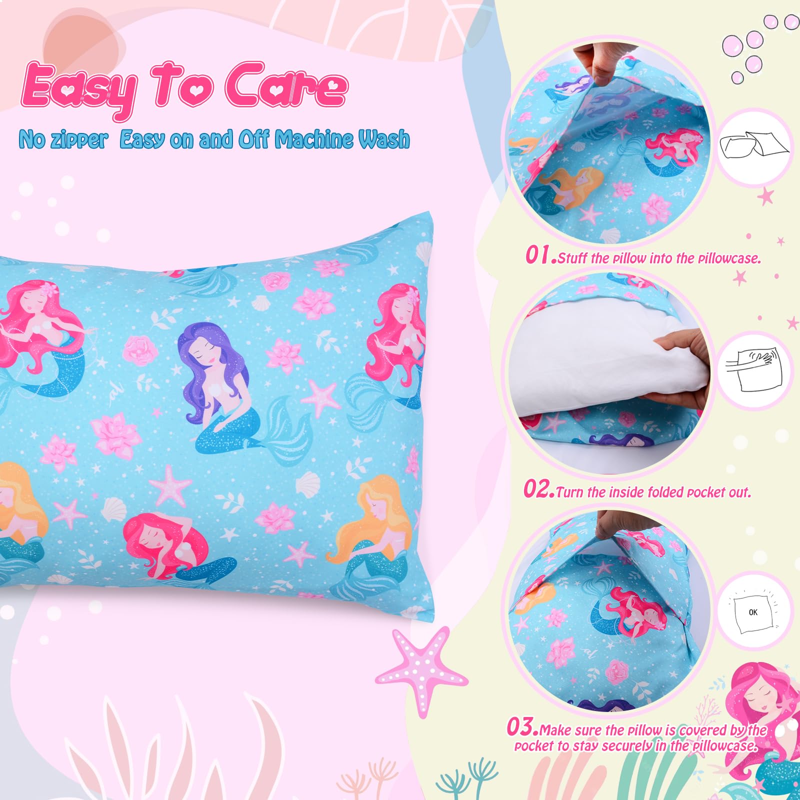 【WASHING CARE INSTRUCTIONS】Kids pillowcases are machine washable and hand washable,gentle cycle,tumble dry low temperature for best results,cool iron if needed.Do not bleach.Fabric gets softer and cozier with each wash.