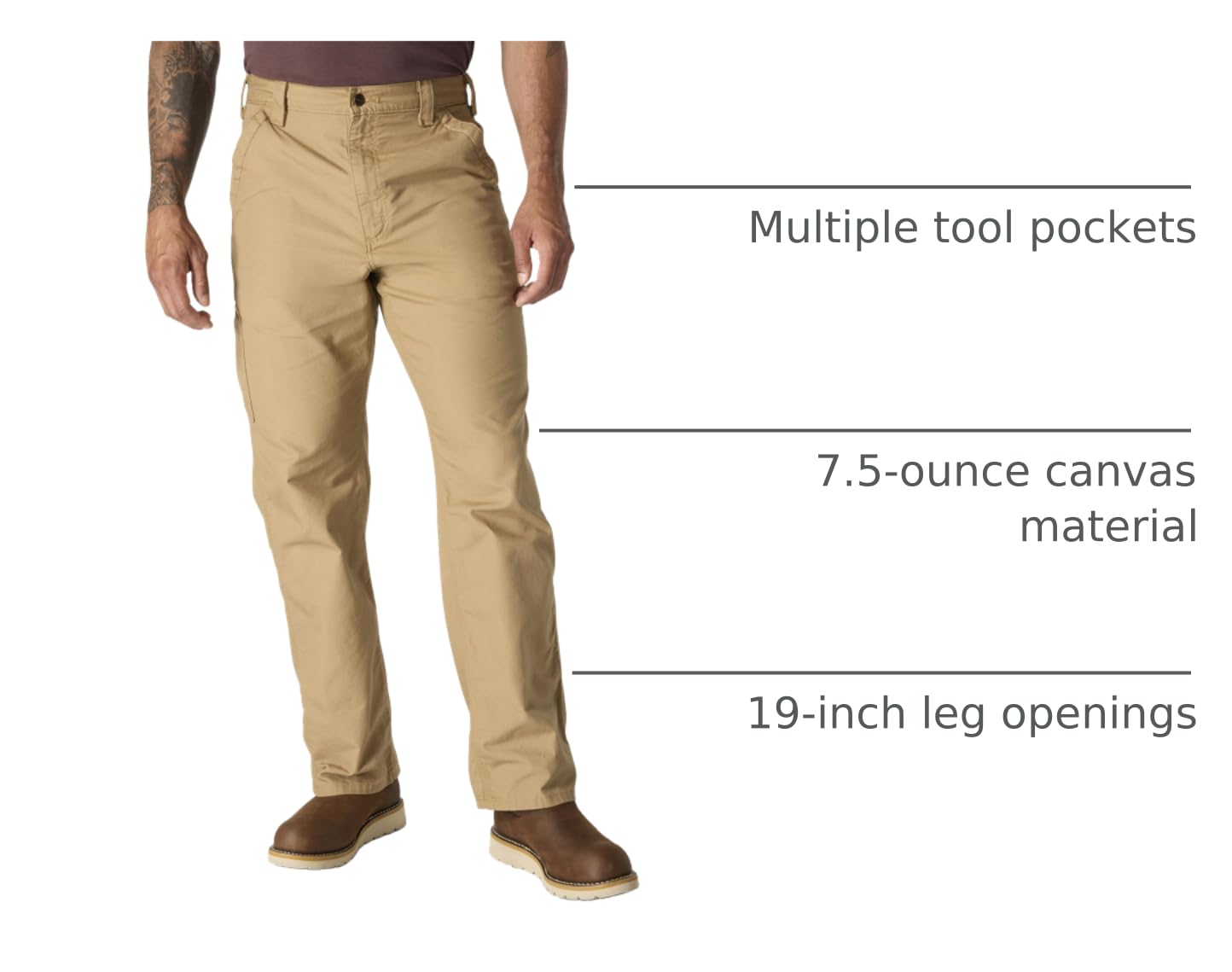 Description Comfortable, practical and long wearing, carhartt's washed duck work dungaree is made of premium 12-ounce, 100-percent ring-spun cotton duck, there's a full seat and thigh, plus a fit that sits at the natural waist, the dungaree is outfitted with multiple tool and utility pockets plus a hammer loop, the back pockets are reinforced, and, the 19-inch leg openings fit over work boots