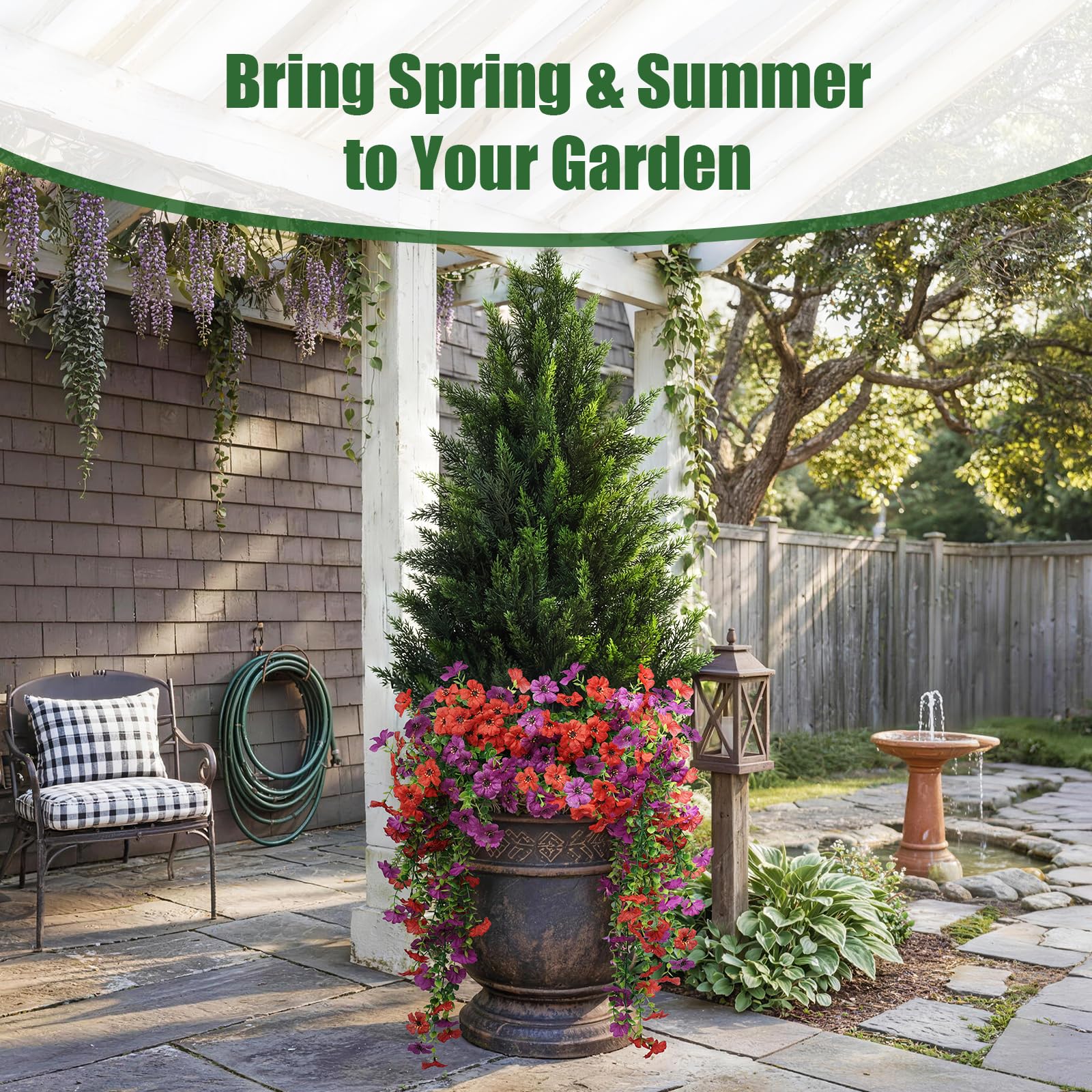 Includes 12 Bundles Silk Flowers: Includes a built-in decorative bouquet designed to enhance spring-themed and everyday decor. The bouquet adds extra visual interest and pairs well with the cedar leaves, creating a balanced and coordinated look. No need to purchase or match separate floral accessories, saving time and effort while providing an easy way to refresh your space with a seasonal decorative accent.