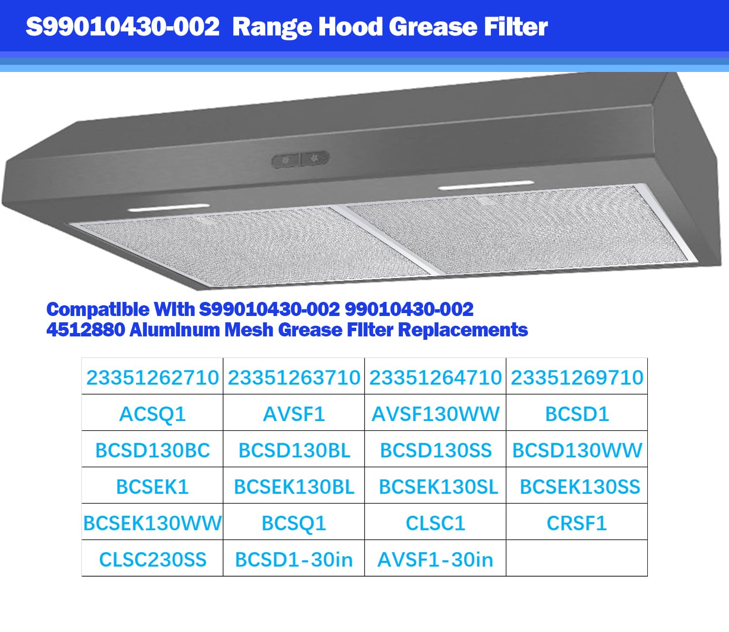 Part Number: S99010430-002,99010430-002,4512880 Range Hood Grease Filter Replacement For Range Hood.Package Contains 2 Filters for Easy and Convenient Replacement.