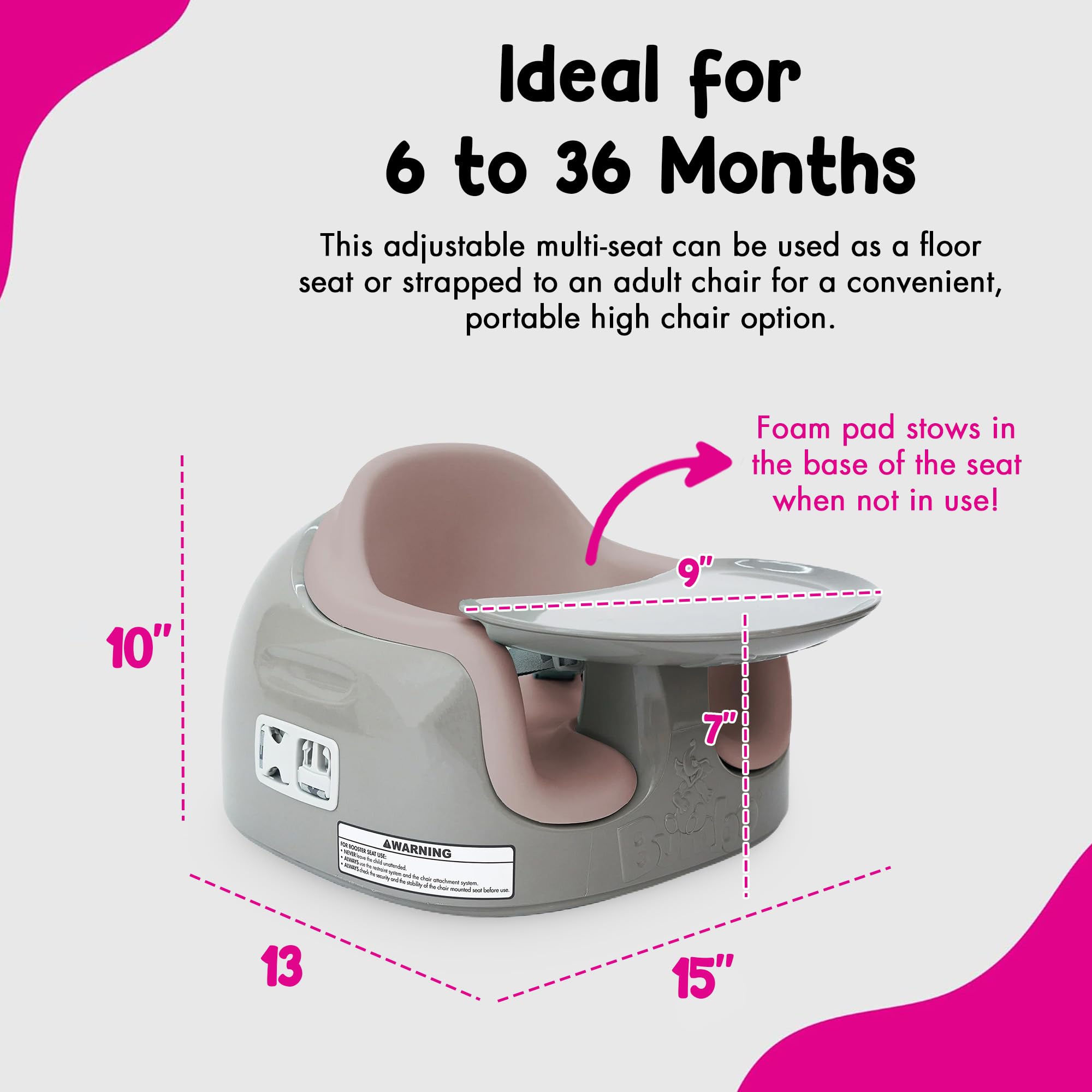 Triple-Function Chair: Our versatile chair adapts to your growing child, serving as a comfortable floor seat, baby high chair, or secure toddler booster seat; has a 3.25-inch leg opening width