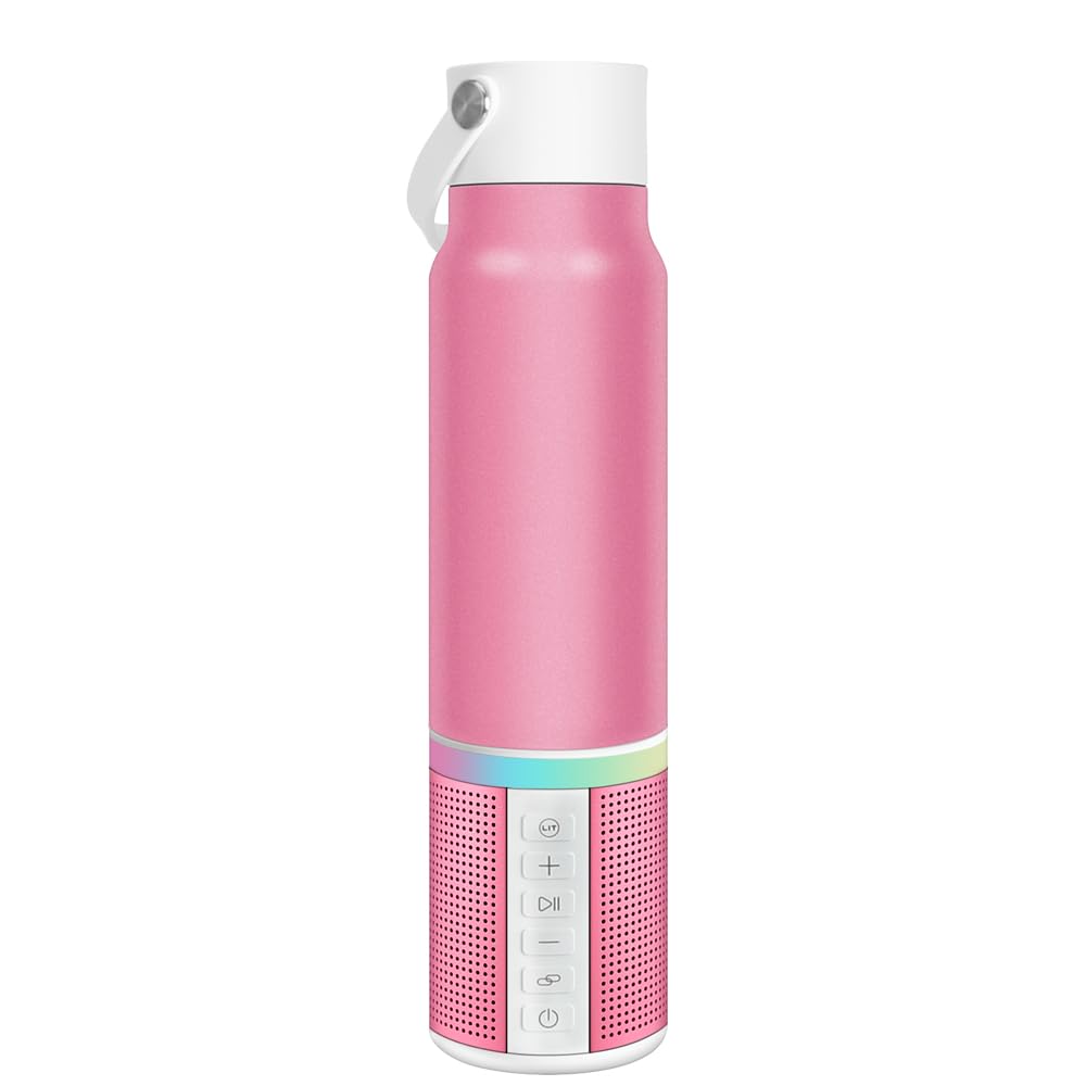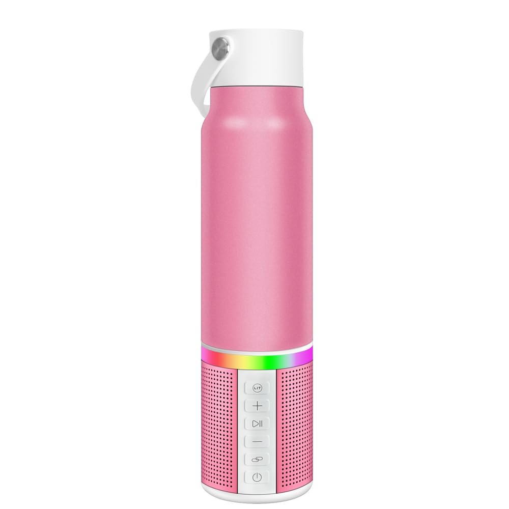 Smart Water Bottle: 20oz Insulated water cup combines with a detachable Bluetooth speaker and fancy LED lighting effects; Rechargeable Bluetooth speaker can use up to 18 hours on a single charge; Bring joy to your sports and keep you hydrated