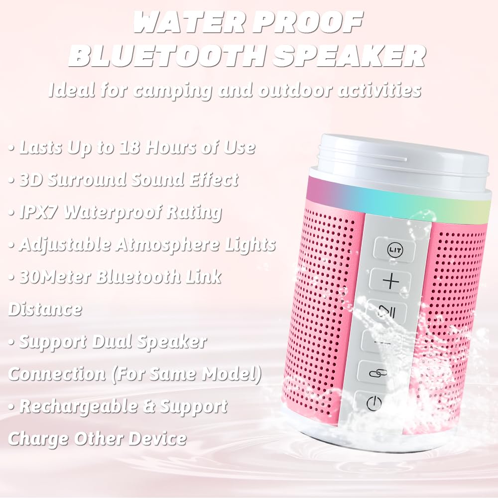 Surround Sound & RGB Light Mode : Experience unrivaled 3D stereo, clear sound and heavy bass quality with our full range speaker; 4 Adjustable colorful RGB light mode give you a cozy and romantic atmosphere for outdoor activities at night