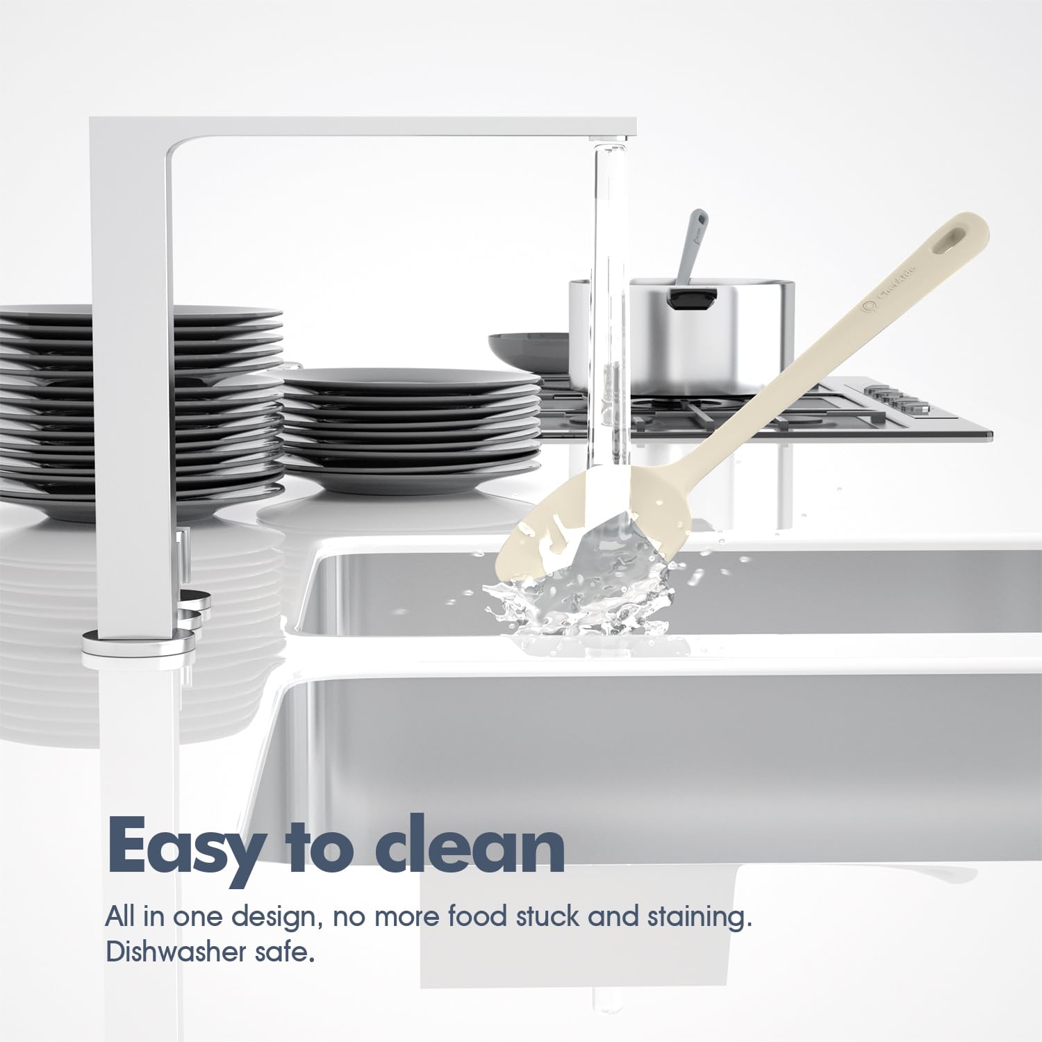 One-Piece for Easy to Clean: With the unique Seamless One Piece Design, there is no crevices for food to stuck in, the handle will never enter the water. It is very easy to clean and dishwasher safe