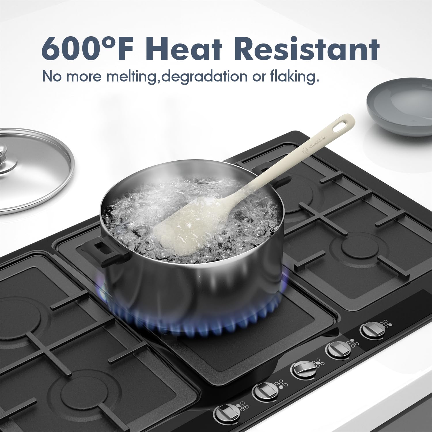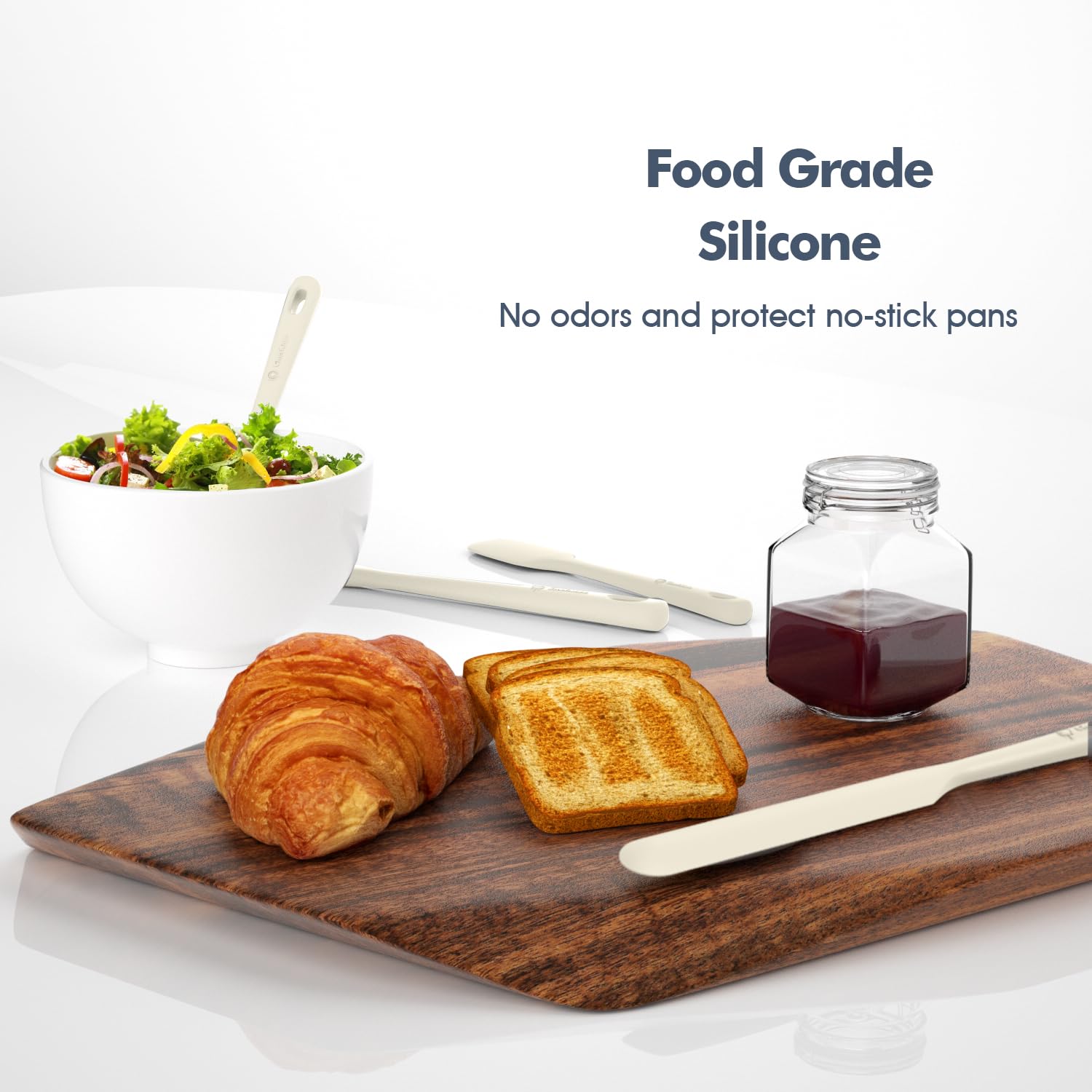 Premium 100% Food Grade Silicone: The silicone spatula set is made of healthy and friendly material, resistant to high temperatures up to 600 °F. No more melting, cracking and worrying