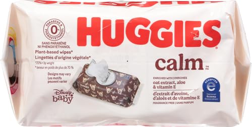 Clean, hydrate, soothe and replenish your baby's delicate skin with the 4 in 1 Sensitive Skincare of Huggies Calm Baby Wipes. Each baby wipe is unscented and enriched with oat extract, aloe and vitamin E. Plus, these disposable baby wipes are plant-based* and have been since 1990, so you can feel confident you're giving your baby a gentle clean. To help maintain healthy skin, Huggies Calm wipes are hypoallergenic, dermatologist-tested, pH-balanced and accepted by the National Eczema Association. They are also free of fragrances, parabens, alcohol and dyes, and they do not contain phenoxyethanol or MIT. And with a push button top and EZ Pull 1-Handed Dispensing, it’s easy to grab wipes when your hands are full! Featuring exclusive Disney's Bambi designs that are as cute as your baby, Huggies Calm wipes are the perfect choice to pair with your Huggies diaper! (*70%+ by weight)