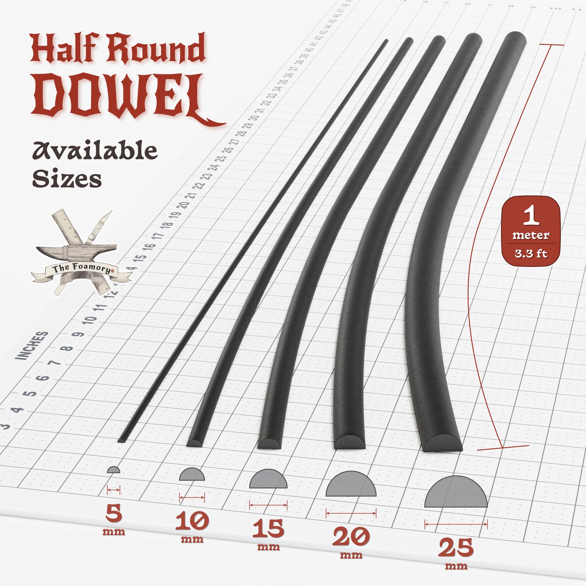 Meet The Foamory full round EVA foam dowel—your pre-shaped, high-density solution for creating flawless details in cosplay, crafts, and DIY projects. The 5mm EVA foam tube is designed for creators who refuse to compromise on quality. This 1-meter-long bendable dowel for costume-making removes the guesswork from crafting intricate details. The pre-shaped design guarantees clean and consistent results with every use, eliminating the need for tedious manual cutting or endless trial and error. With no cutting, no guesswork and no hassle, you can dive straight into crafting with confidence, knowing your projects will have a professional-grade finish every time. Every detail of this cosplay EVA foam dowel is designed to refine your work. Its lightweight build ensures easy handling and seamless application, while the 85kg/m³ EVA high-density foam material provides exceptional durability needed for professional, detailed, and long-lasting finishes. They are as versatile as they are reliable. Adhesive and paint-friendly, they simplify your process while uplifting your results. Use these black craft foam dowels to build stunning cosplay designs, model landscapes, or even unique home decor pieces. Their versatility is unmatched, whether you are adding intricate trims to armor, weather stripping window seals, or building a soundproof space. These dowels are not just for cosplay, they are a hobbyist’s ultimate dream tool. Whether you are adding intricate details to your Warhammer miniatures, crafting lifelike train models, or perfecting imaginative dioramas, these foam round dowels provide the precision and versatility needed to bring your creative visions to life. Craft every detail with the same dependable material, because achieving perfection is now as simple as using the right full round dowel and bringing your most intricate ideas to life with ease. With The Foamory Full Round EVA Foam Cosplay Dowel, every project—big or small—gets the precision it deserves.