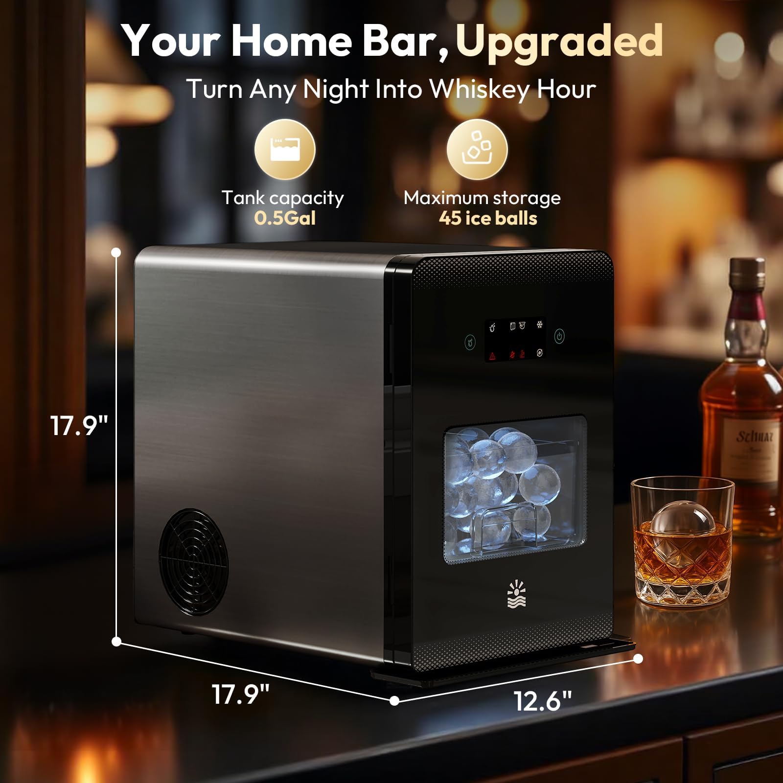 【AUTOMATIC SELF-CLEANING】– Ensure pure, fresh-tasting ice spheres with every batch thanks to the self-cleaning function. Just press and go—no scrubbing required. The hygienic cycle removes mineral buildup, extending the life and quality of your machine greatly.
