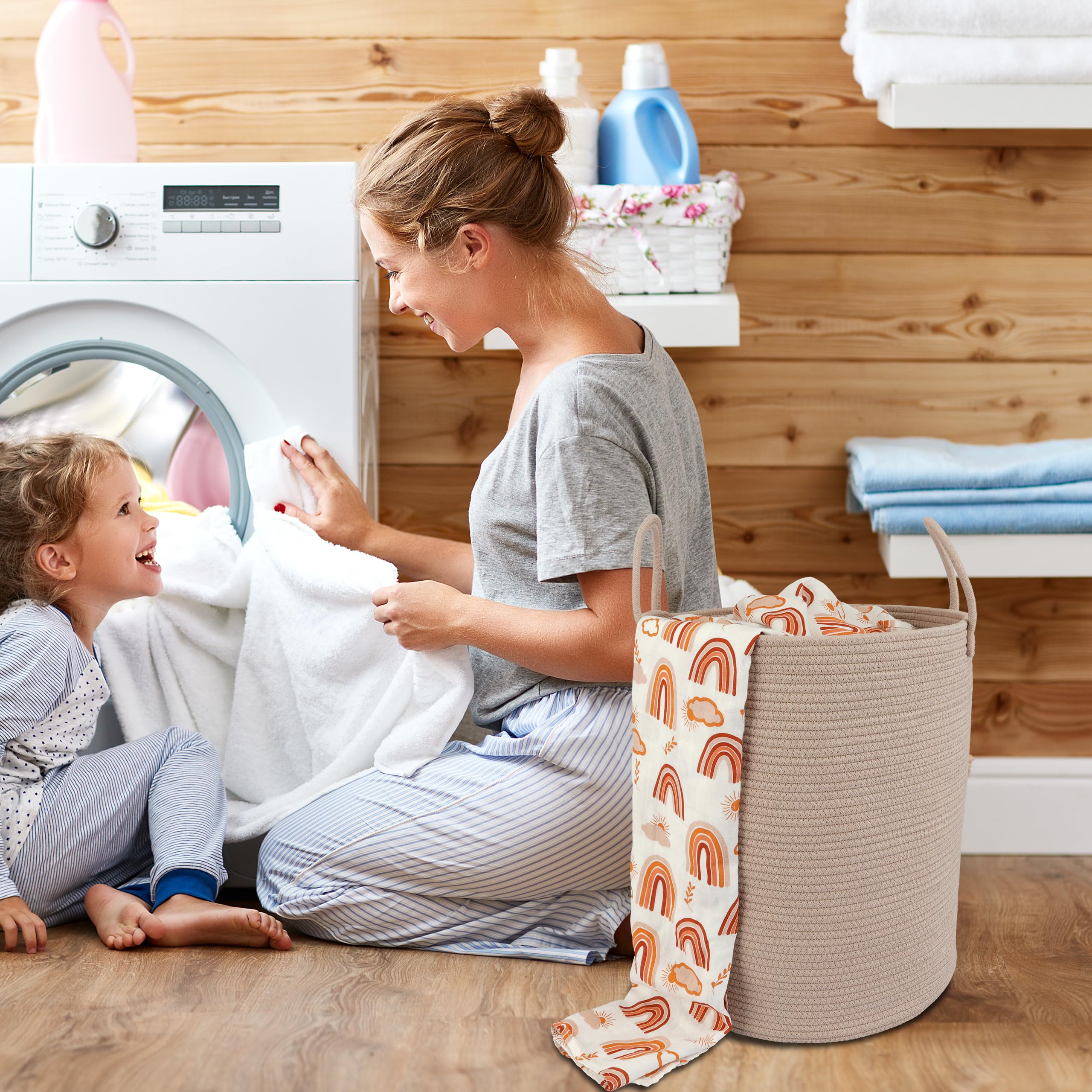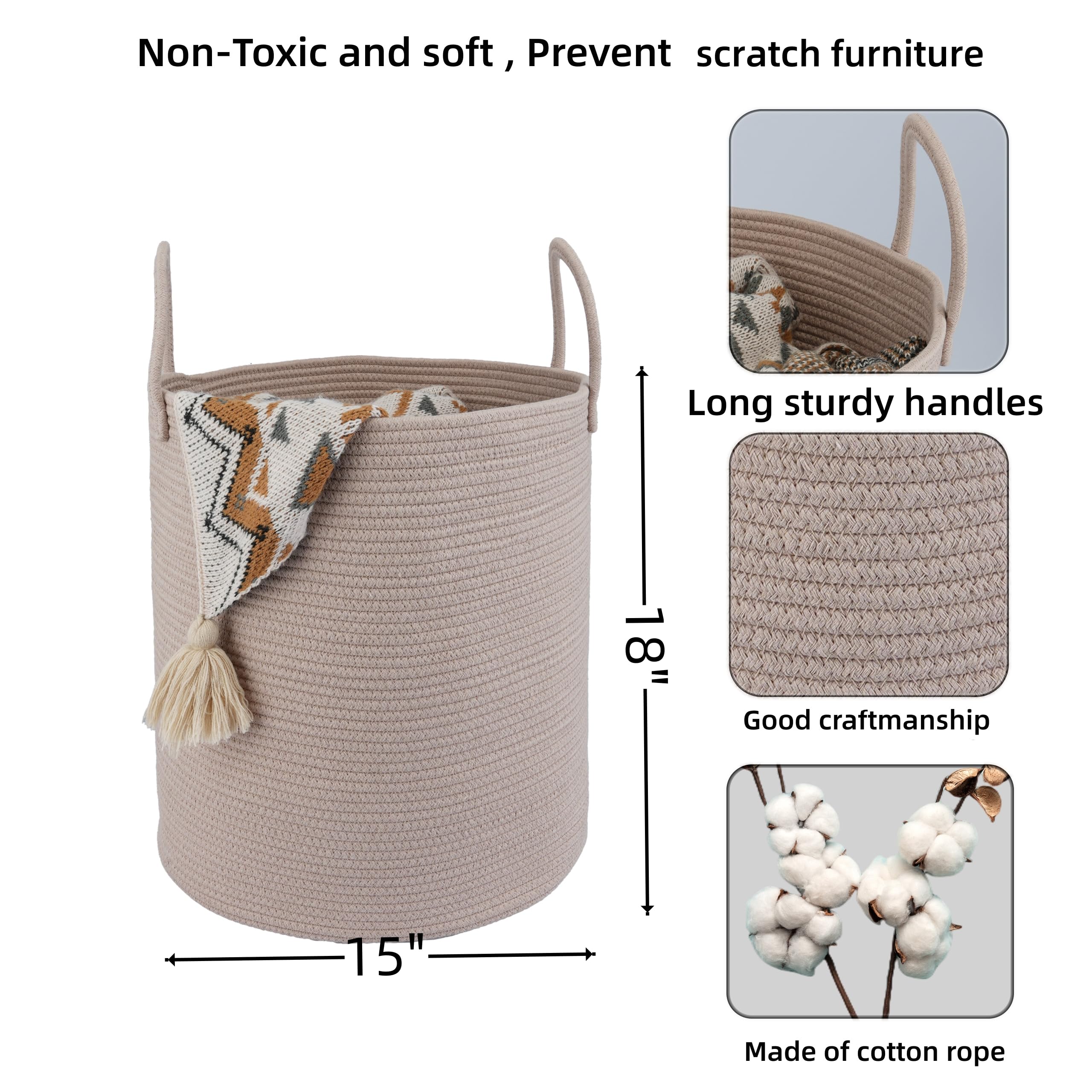 Designed to complement your room and decor: We have carefully selected classic solid colors for these rope basket bins or hampers for laundry. With these colors, the laundry hamper will look good in any room of your home. This tall round rope blanket storage basket enhances any room or decor. It is perfect for bedrooms, bathrooms, and dorm rooms. These aesthetic rope baskets or hampers for bedroom are essential items for your daily storage needs, helping keep your room clean and organized.