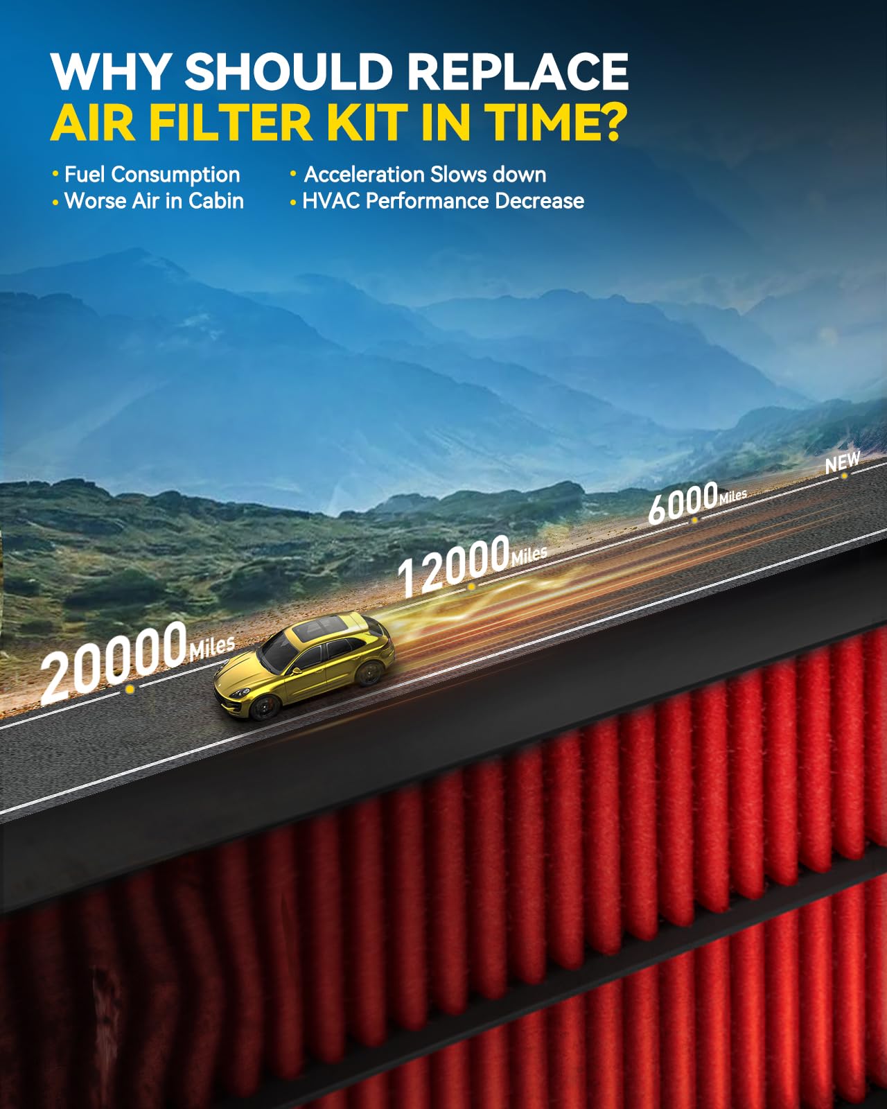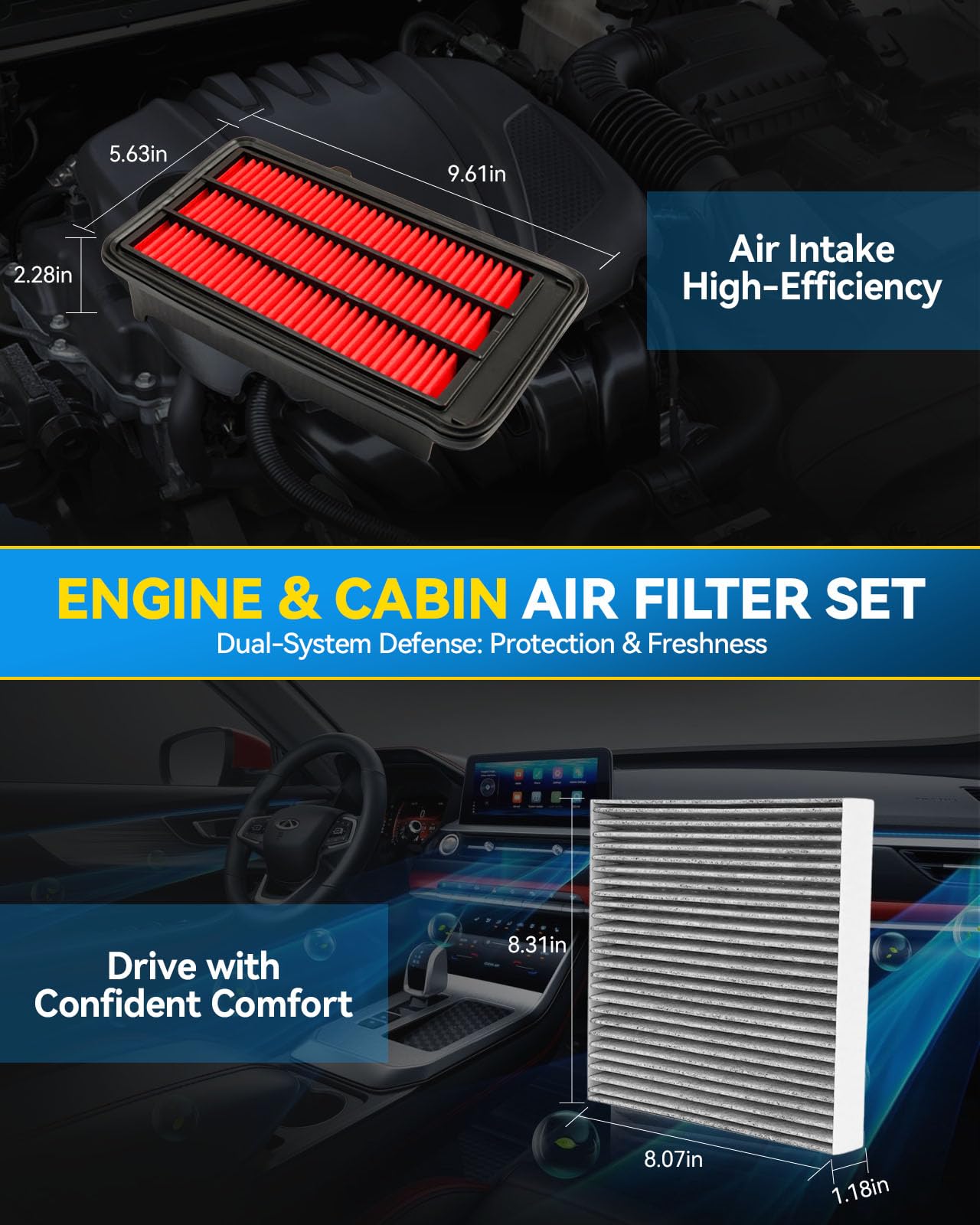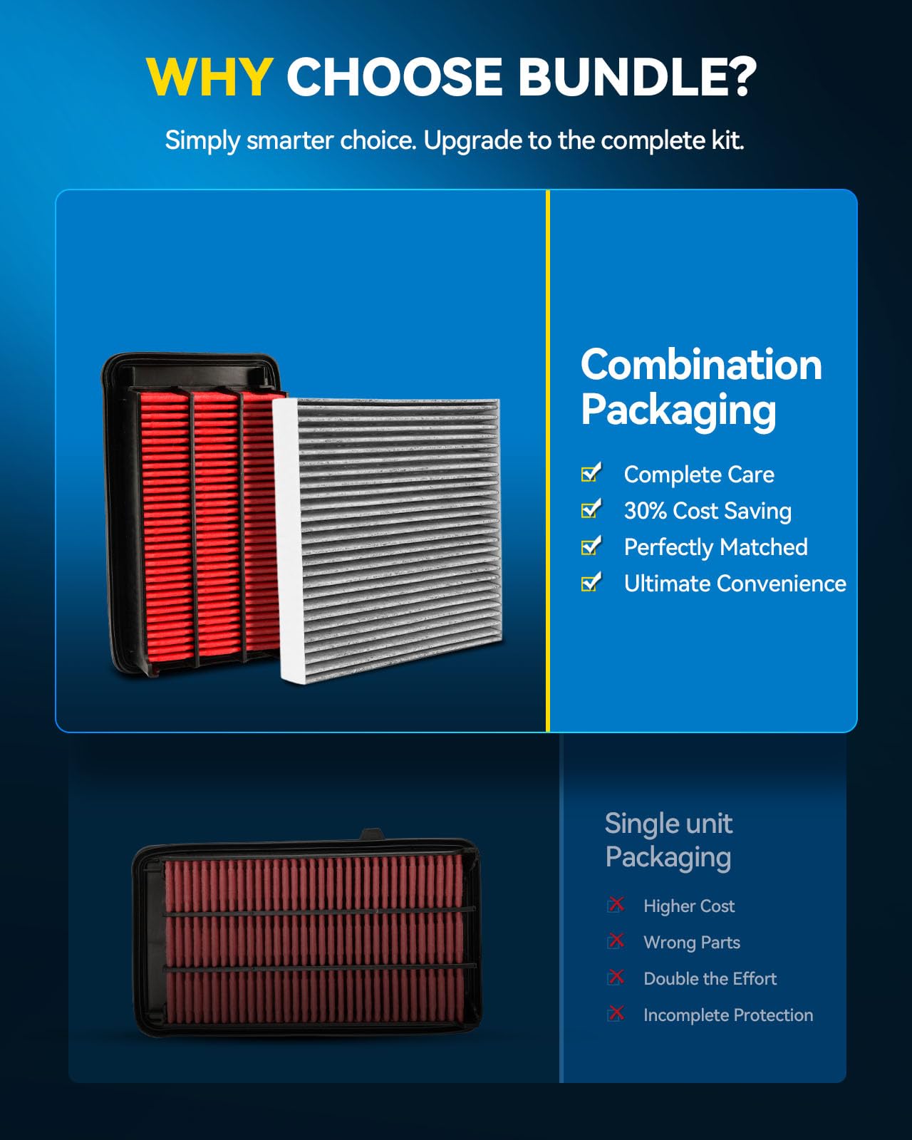 [Ultimate Convenience Bundle]: Skip the hassle of separate purchases! Our curated 2-in-1 kit matches the exact engine & cabin air filters your vehicle needs. Simply enter your make, model, and year for a perfect fit. One click, one box, one-stop shopping that saves you both time and money