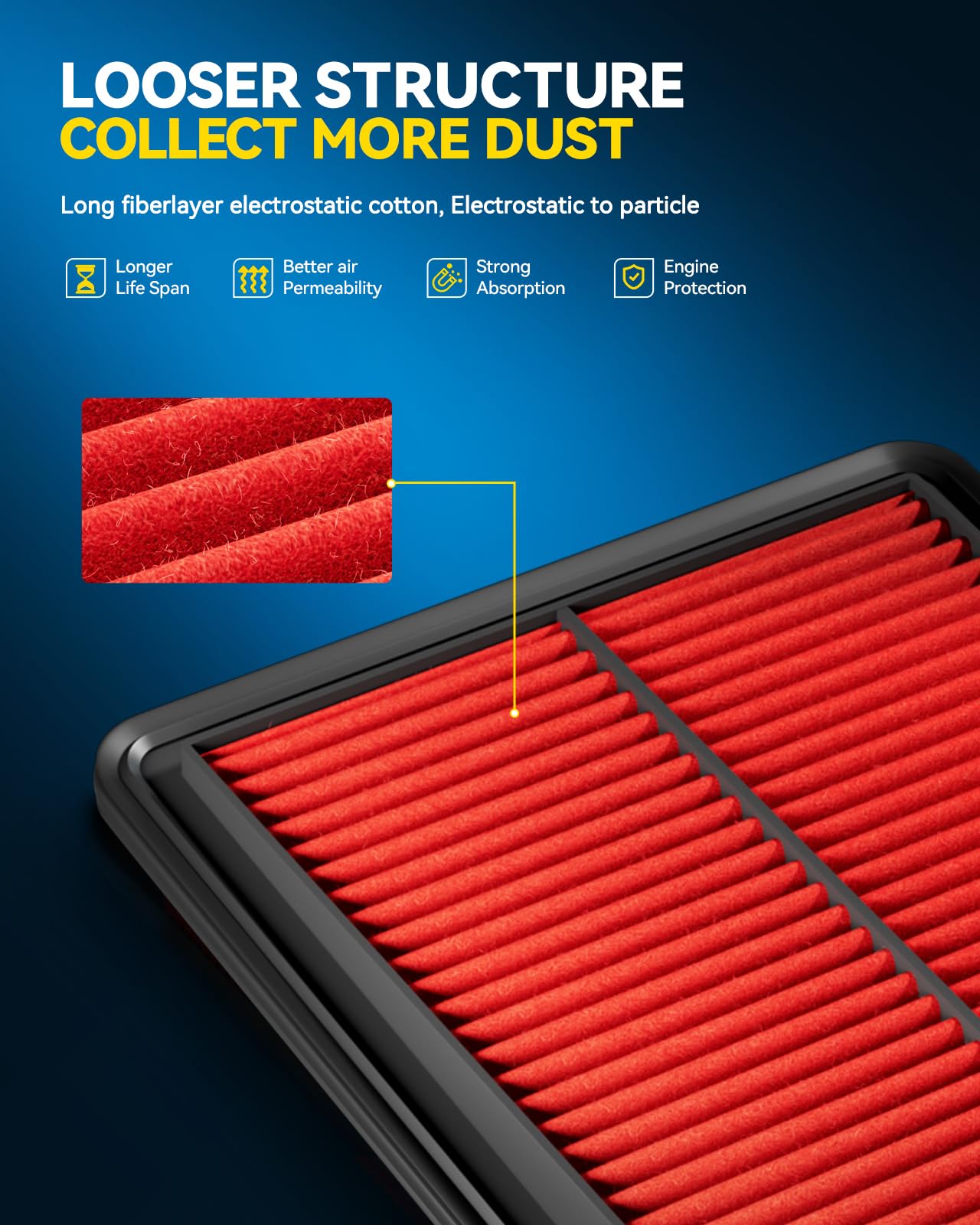 [Synced Performance & Protection]: Two filters, one mission. Our engine air filter guards your powertrain by trapping harmful dust and debris for peak performance. The cabin air filter cleans the air you breathe, absorbing pollen, dust and odors. Replacing both together ensures optimal engine performance and cabin air quality work in harmony to extend engine life