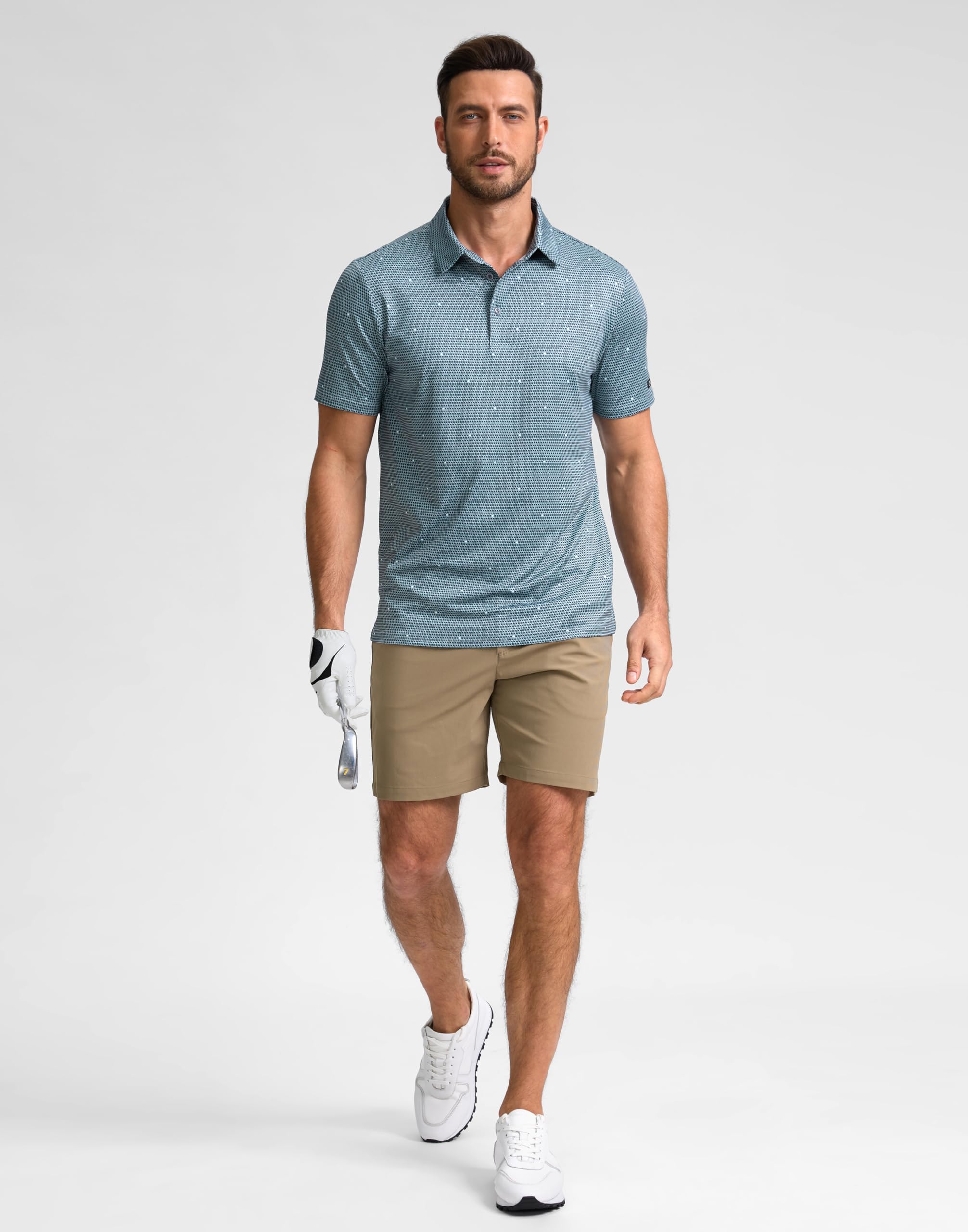 Performance Polo: Breathable, lightweight men's polo shirts is made with moisture wicking and quick dry material, so it will keep you cool and no sticking or clammy feel during those hot months outside. UPF 50+ protect you from the uv light of the sun. The perfect combination for the golf course or any outside sports.
