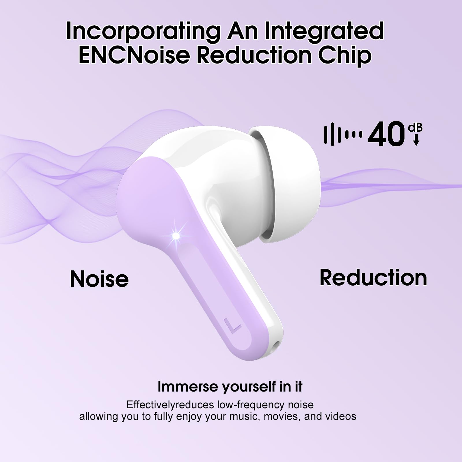Clear call experience: This noise cancelling earbuds uses advanced ENC call noise reduction technology to effectively filter out more than 80% of external noise, ensuring that the other party's voice remains clear during busy commuting, work or exercise, providing you with a high-quality call experience. The Headphones equipped with 4 high-performance microphones, it can accurately capture your voice, so that the other party can always hear clearly throughout the call even in a noisy environment.